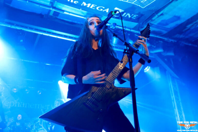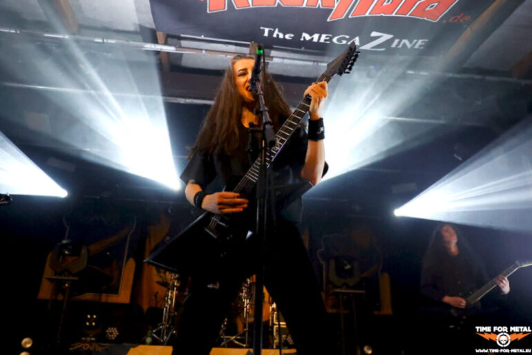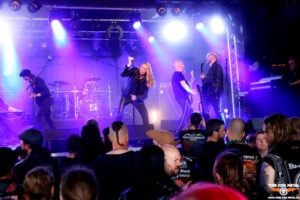 Es folgt mit Aephanemer noch eine After-Headliner-Show, die die Anhängerschaft von metallischen Klängen vor der Bühne begrüßt. Wie beim Hörnerfest üblich, gibt es einmal mehr ein Kontrastprogramm. Aephanemer kommen aus Frankreich und liefern einen Mix aus Folk Metal, Symphonic Metal und Death Metal, der aber immer mit einer greifbaren Melodie unterlegt ist. Die Gitarren knattern ordentlich zu Stücken wie Land Of Hope, Le Radeau De la Méduse oder The Call Of The Wild. Auch wenn es französisch benannte Songs gibt: International singt Marion Bascoul in Englisch. Auf dem Album A Dream Of Wilderness befindet sich zum Beispiel Le Radeau De La Méduse in zwei Versionen, einmal auf Französisch und eben in der heute dargebotenen englischen Version. Eine Stunde liefert das Quartett ordentlichen Stoff, dann ist der musikalische Teil des ersten Festivaltages zu Ende. Da sich Aephanemer erst nach der Show um Merch und Fans kümmern und hier komplett auf Eigenregie setzen, zieht sich die Räumung des Infields in die Länge. So wird die Nacht für alle beteiligten Personen, allen voran für die Crew des Hörnerfests, noch kürzer als geplant.