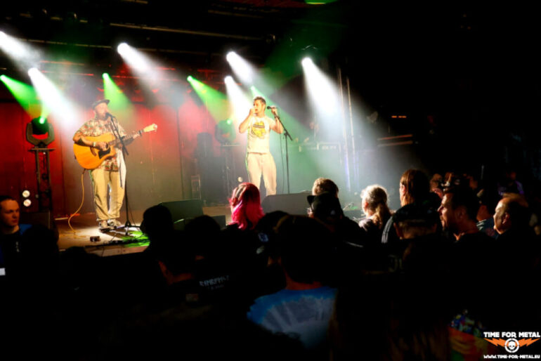 Über Niveau lässt sich bekanntlich streiten, über Das Niveau aber nicht. Hinter diesem Bandnamen verbirgt sich das Comedy-Duo Martin Spieß und Sören Vogelsang, das nur mit Akustikgitarre und Mikrofon bewaffnet die Meute unterhält. Die Themen sind aktueller als jemals zuvor, egal ob Klimawandel oder die Veränderung der Gesellschaft, in der Menschen andere Menschen wegen Äußerlichkeiten oder Glaubensrichtungen diskriminieren. Dass es Lieder gibt, die sogar so klingen, als wären sie von den Ärzten, ist ebenfalls klar. Die Bude ist bereits jetzt mehr als gut besucht und die beiden Herren liefern ihre Show vor fast vollem Haus ab. Es ist aber die letzte Show von Das Niveau. Vor dem letzten Track gibt es die Ansage, dass der gesamte Merch gegen Spende unters Volk gebracht wird. Die Diskografie als CD ist genauso dabei, wie einige Shirts oder die Vinylausgabe von Rockt!. Am Ende sind der Merch verteilt, die Spendenkasse gut gefüllt und die Fans zufrieden. Es ist aber nicht der letzte Bühnenauftritt auf dem Hörnerfest 2025 der beiden Komödianten.
