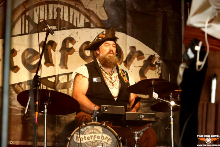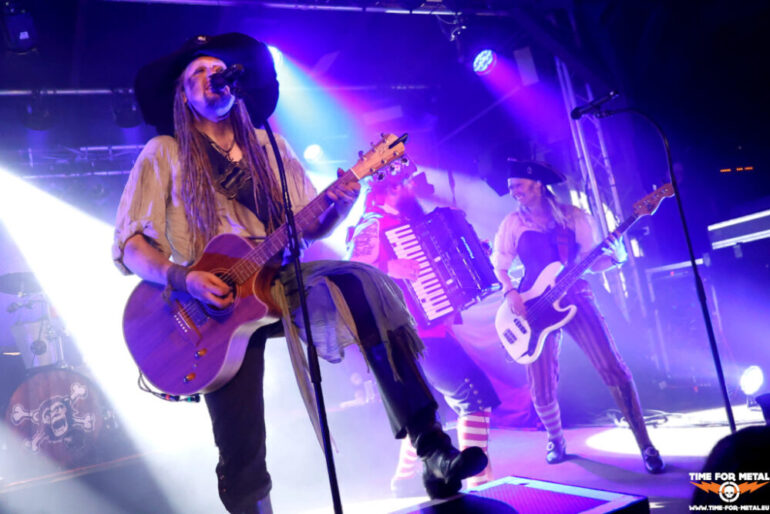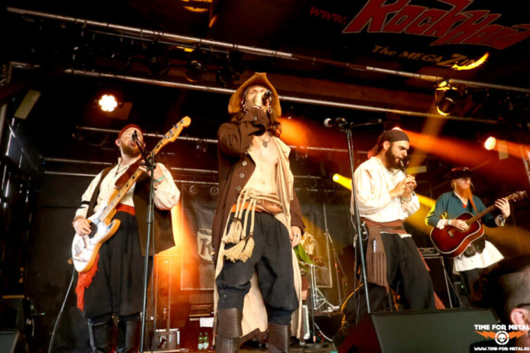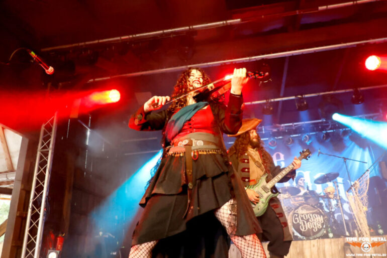 Wenn wir schon bei Piraten sind, dann passen die Spanier The Groggy Dogs perfekt dazu. Von Sevilla ist es nicht weit zum Wasser. Die Spanier mixen den allgemein bekannten irischen Shantys Elemente von Ska, Punk und Metal bei. Das Gebräu sorgt für Trink- und Tanzfreude und die Fahrt, die mit Katerfahrt begann, nimmt mit The Groggy Dogs an Tempo zu. Die Show ist Party mit einer gewissen Chaotik, die die Band auch sonst mit sich bringt. Die Nachfrage der Fans bezüglich Tonträger wurde negativ beantwortet. Allerdings haben die Damen und Herren ihre CDs unter einer Bank im Merch verbuddelt und selbst nicht mehr gefunden. Time For Metal verkauft an den folgenden Tagen die gefundenen The Groggy Dogs-CDs.