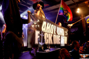 Es ist alles eine Nummer größer geworden bei Mr. Hurley & Die Pulveraffen. Auch der Bühnenaufbau ist zwei Nummern größer als vor mehr als zehn Jahren. Songs wie Tortuga, Meine Schnauze, Unser Untergang oder Leuchtturm sorgen für Stimmung und beäugen das Piratenleben mit mehr als zwei zwinkernden Augen. Aber auch ernste Themen stehen auf dem Programm der Piraten. Mann Über Board übernimmt Pegleg Peggy, wo es um das Thema Sexismus geht. Neu auf dem Programm ist der Haifisch in der 2024er-Version. Dazu finden sich diverse Gäste, unter anderem Das Niveau, aber auch Bandmitglieder von zum Beispiel Vogelfrey oder Katerfahrt mit auf der Bühne ein. Sänger und Gitarrist Mr. Hurley eröffnet das Stück mit dem Hinweis, dass sich die Musik in die Politik einmischen muss, da sich sonst die Politik in die Musik einmischt, was die Vergangenheit gezeigt hat und die aktuelle Situation zum Beispiel in Russland zeigt. Ein Bild sagt mehr als Worte, danke für die klare Kante, egal, ob vor der Bühne 300 oder 3000 Menschen stehen. In dem Sinne „Ahoi und F!ck die AFD“.