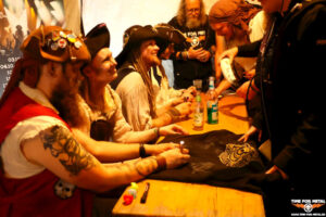 Dieses Wochenende steht ganz im Zeichen von Wikingern, Piraten, Mägden und Gesinde sowie Händlern, Gauklern und Feuershows. Natürlich darf die Musik auch nicht zu kurz kommen. So hat Thomas in seinem Garten diesmal illustre Bands wie u. a. Korpiklaani, Hamradun, Das Niveau, Mr. Hurley Und Die Pulveraffen, Cultus Ferox, Ragnaröek, Eihwar oder Belore, Suidakra, Sagenbringer und Eisregen geladen. Dazu gesellen sich auf der Marktbühne noch einige kleinere Acts, die an dieser Stelle nur kurz erwähnt werden, denn das eigentliche musikalische Geschehen findet auf der Hauptbühne statt. Wir von Time For Metal haben uns neben dem Bericht über das Festival auch dem bis dato faktisch nicht vorhandenen Autogrammstand gewidmet. Das für das Hörnerfest bisher nur sporadisch bzw. durch die Bands selbst organisierte Meet ’n‘ Greet wurde jetzt von uns gebündelt organisiert und durchgeführt, was sich im Nachhinein als gelungen entpuppen soll. Außerdem haben wir uns des Social-Media-Contents angenommen, und im Verlaufe des Events sollen zeitnah Liveclips direkt von der Bühne hochgeladen werden. Das hat Ariane Blumenau für uns diesmal übernommen, da wir leider zu wenig eigene Leute vor Ort haben. All dies soll schon mal eine Generalprobe für das in vier Wochen stattfindende Headbangers Open Air sein, bei dem genau diese zwei Punkte exklusiv von uns durchgeführt werden.