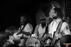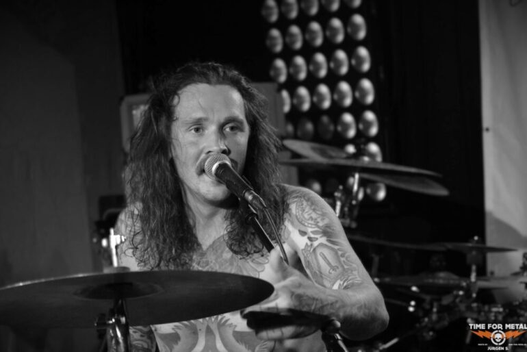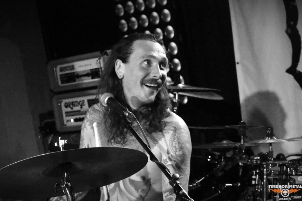 Auffällig ist die Bühnenaufstellung: Frontmann Rasmus Bang sitzt mittig am Schlagzeug, direkt am Bühnenrand positioniert, während seine beiden Mitstreiter links und rechts flankieren. Dass der Sänger gleichzeitig hinter den Drums sitzt, sieht man selten – und noch seltener funktioniert es so gut wie hier. Rasmus Bang überzeugt mit enormer Energie, während Marc Christensen immer wieder mit stoischer Ruhe seine Riffs ins Publikum schiebt oder gedankenverloren nach oben blickt. Neben ihm wirkt Theis Roed Stenberg Thorgersen wie entfesselt, bearbeitet seinen Bass mit wilder Intensität. Die ohnehin schon extreme Hitze im Keller erreicht während des Sets fast schon absurde Ausmaße, hier unten fühlt sich selbst die Hölle gut aufgehoben. Doch genau das verstärkt die Wirkung der Musik noch zusätzlich. Alles wirkt roh, direkt und ungefiltert. Hitze, Nähe und Authentizität sind die Attribute, die diesen Gig beschreiben.