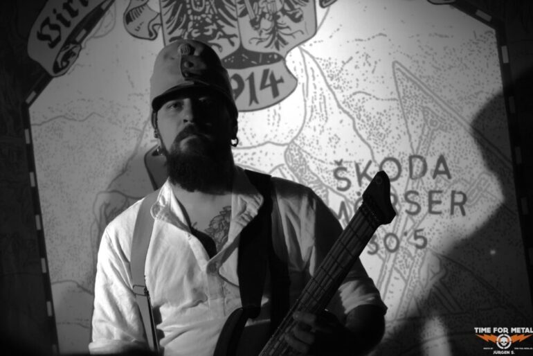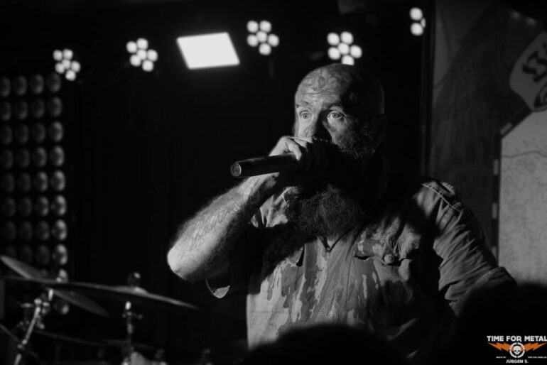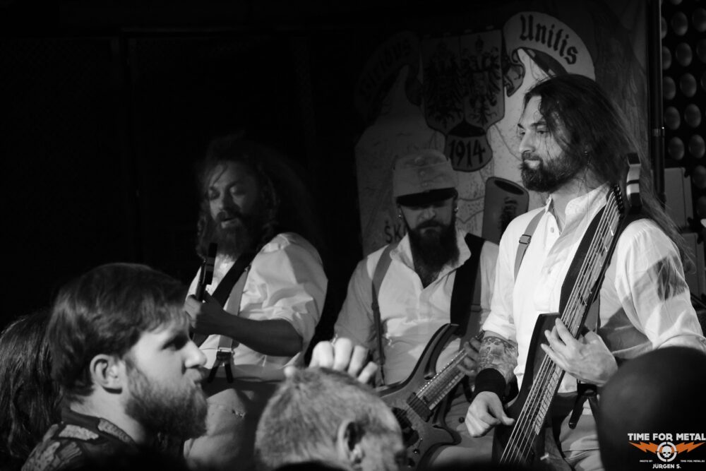 Frontmann Dmytro Kumar steht dabei im Zentrum des Geschehens und zieht mit seiner eindringlichen Präsenz alle Blicke auf sich. Seine Vocals wirken aggressiv und kontrolliert zugleich, während die Band hinter bzw. neben ihm ein massives Klangfundament errichtet. Ein spannendes Detail am Rande für die Leser: Die Bandmitglieder treten auf den Veröffentlichungen unter wechselnden Namen auf, die das erzählerische Konzept rund um den Ersten Weltkrieg widerspiegeln. Hinter diesen Rollen stehen jedoch feste Musiker. Live stehen an diesem Abend Armen Ohanesian am Bass sowie das Gitarrenduo Oleksa Fisyuk und Vitaliy Vygovskyy und der bereits erwähnte Dmytro Kumar am Mikro auf der Bühne. Am Schlagzeug sitzt Igor Kovalenko, der seit dem letzten Jahr unter dem Pseudonym Reich Teil der Band ist. Gemeinsam sorgt diese Besetzung für die massive und zugleich präzise Live-Umsetzung des komplexen Sounds. Zwischen den Songs richtet Dmytro Kumar immer wieder das Wort ans Publikum und spricht über das Leid des aktuellen Krieges in seiner Heimat Ukraine. Diese Momente verleihen dem Konzert eine zusätzliche emotionale Tiefe, die weit über die Musik hinausgeht.