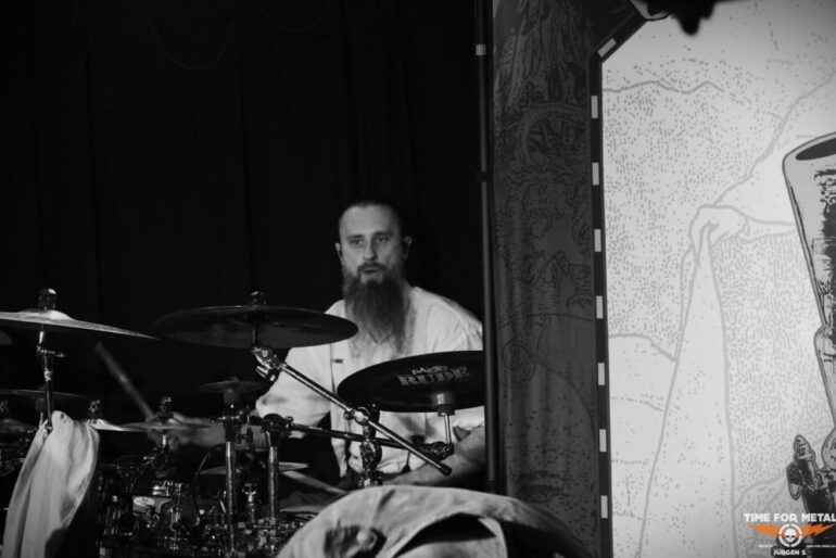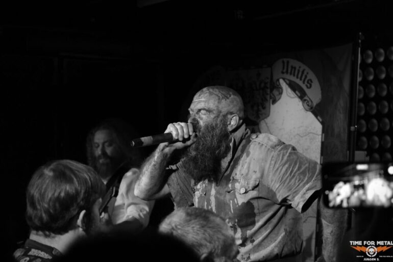 Als die Band richtig Fahrt aufnimmt, kippt die ohnehin gespannte Atmosphäre endgültig. Wuchtige Gitarren, donnernde Drums und düstere Klangflächen rollen durch den Raum und treffen das Publikum mit voller Intensität. Durch die klangliche Wucht entsteht eine beklemmende Stimmung. Die Mischung aus Death-, Black- und Doom-Elementen entfaltet live eine rohe Gewalt, die gleichzeitig strukturiert und durchdacht wirkt.