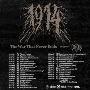 Mit der The War That Never Ends Tour 2026 kehren 1914 auf die europäischen Bühnen zurück und wir sind heute Abend in Frankfurt am Main mit dabei. Im Zentrum steht das aktuelle Album Viribus Unitis, erschienen am 14. November 2025 über Napalm Records. Thematisch bleibt der Fokus auf den Schrecken des Krieges, ergänzt um Aspekte wie Zusammenhalt und Menschlichkeit. Live verspricht das Ganze ein dichtes, eindringliches Erlebnis zu werden, perfekt ergänzt durch Katla, die den Abend eröffnen. Bedingt durch die aktuelle Verkehrslage treffen wir etwas verspätet ein, und es wird direkt am Eingang klar, dass es heute Abend brechend voll wird bzw. ist.