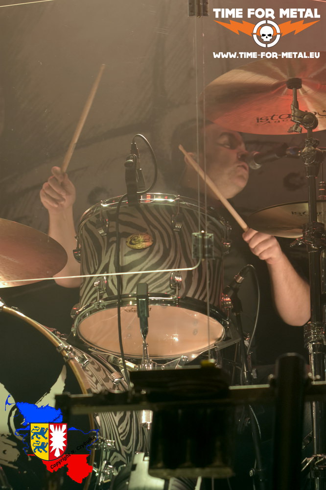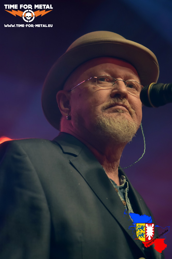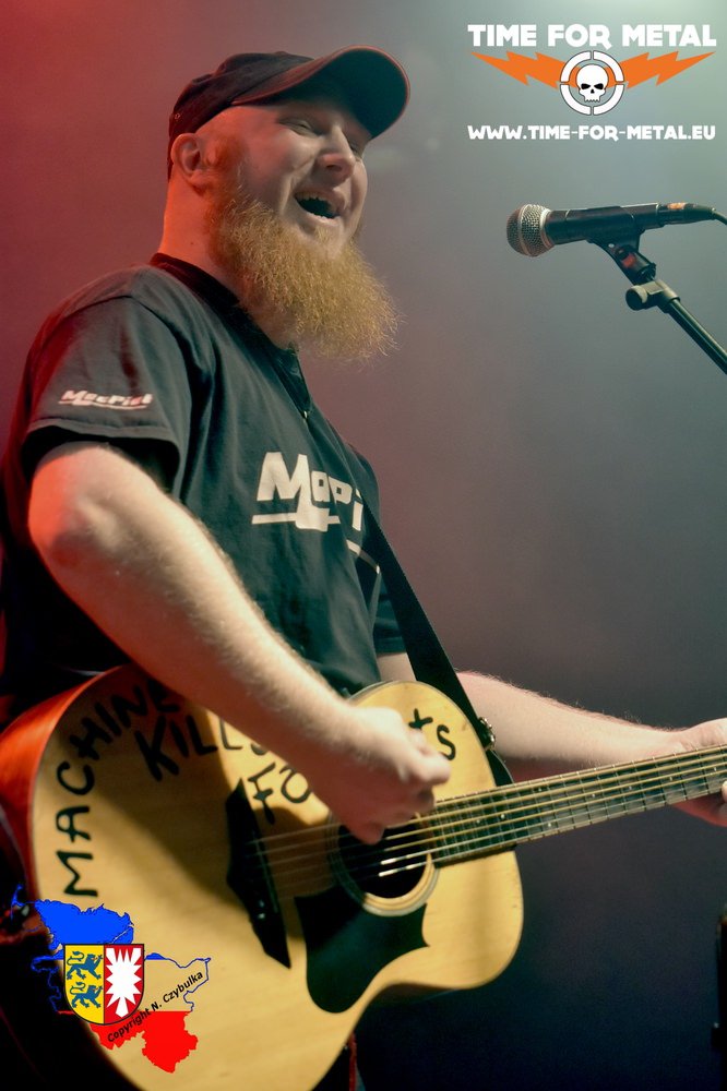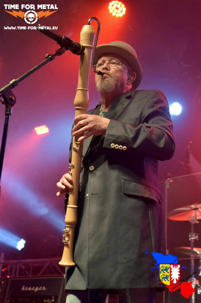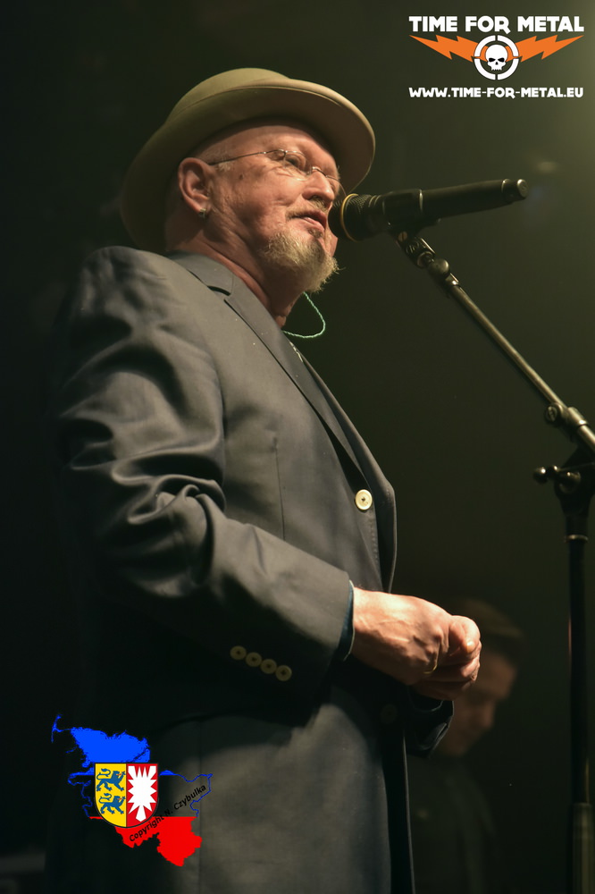 Nach rekordverdächtig kurzer Umbaupause kommen Torfrock. Nachdem Raymond Voss durch seine Herzschwäche die Sommertour schon nicht mitmachen konnte, ist er auch bei dieser Weihnachtstournee nicht dabei. Sven Berger rutscht wieder mit Bass in das Aufgebot. Rollo, Der Wikinger eröffnet die Setliste. Sofort sind alle Besucher dabei, jede Zeile wird mitgesungen. Klaus Büchner, heute mal nicht lässig gekleidet, sondern in seinem Hanebüchner-Outfit, steht gewohnt souverän mit seiner riesigen Bassflöte in der Mitte der Bühne und klagt sein Leid von Willi, Die Ratte.