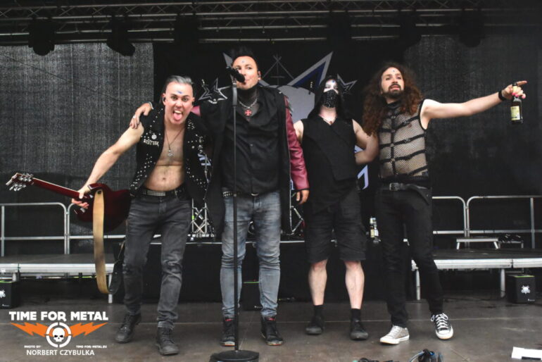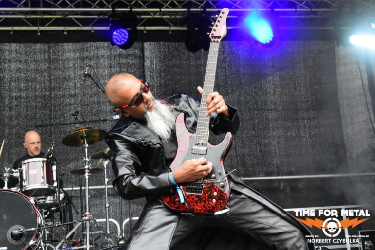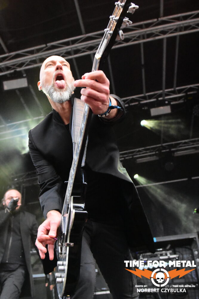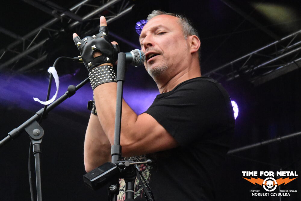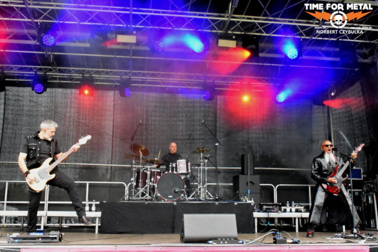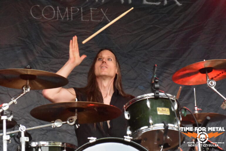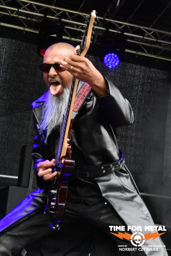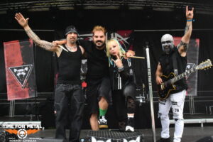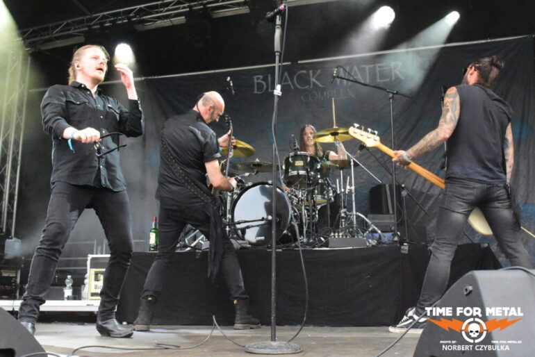 Wenn die Musiker einer unbekannten Band einen beim Aufbau von der Bühne herab begrüßen, bedeutet das meist, ein Zweitprojekt eines bekannten Künstlers ist am Start. So ergeht mir es mal wieder bei Black Water Complex aus Hamburg. Die Rock- und Metalband hat Sänger Tim Dammann am Mikrofon, der natürlich von seiner Hauptband Hardbone bekannt ist. Die Band wurde 2019 als Studioprojekt vom Produzenten und Mastermind Schrödey (u. a. Joachim Witt, Torfrock, Gorilla Monsoon, Hardbone) gegründet. Aber auch die anderen Bandmitglieder sind bekannt aus Bands wie Holy Moses, Temple Of The Absurd, Lacrimosa oder Warpath. Ihr Auftritt beginnt vor einer fast leeren Fläche vor der Bühne, zieht aber in Windeseile zahllose Fans an, die den Auftritt tragen. Drummer Robert Julien Schmidt lässt in altbewährter Weise wieder seine Sticks fliegen. Langweilig ist das nicht!