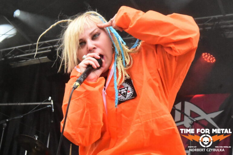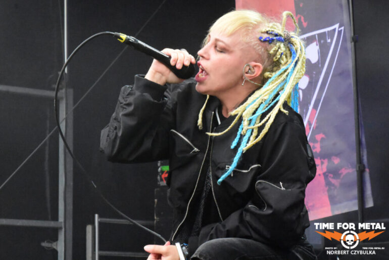 Jetzt wird es wieder weiblich und schnell auf der Bühne. Mit den Italienern aus Mailand von Exilia kommt eine Nu-Metal-Band auf die Bühne, deren Sängerin Masha Mysmane wie ein Wirbelwind über die Bühne fegt oder auf dem Fußboden kauernd ihr Programm zum Besten bringt. Derzeit sind sie auf Unleashed Tour, bevor zum Jahresende eine neue Scheibe erscheinen soll, wie sie mir sagten. Seit 2023 besteht die Band und befindet sich derzeit auf dem Höhepunkt ihrer Karriere. In Deutschland sind sie insbesondere durch ihre Zusammenarbeit mit In Extremo-Frontmann Michael Rhein bekannt. Auf der 2024er Unleashed XX Special Edition hat er beim Song I Guess You Know einen Gastauftritt.
