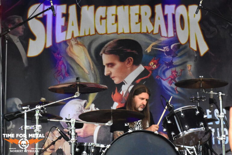 Steamgenerator sind für viele hier auf dem Festival absolut unbekannt. Sie stammen aus Wolfsburg und haben mit Homeless Romantic aus 2023 bereits ihr zweites Album am Start. Anders als der Name vielleicht vermuten lässt, sind die fünf Stahlarbeiter im Doom und Stoner Bereich zu Hause. Das Quintett legte eine Show hin, die deutlich mehr Zuschauer auf dem Feld verdient hätte. Kommen Doom und Stoner hier vielleicht nur nicht an?