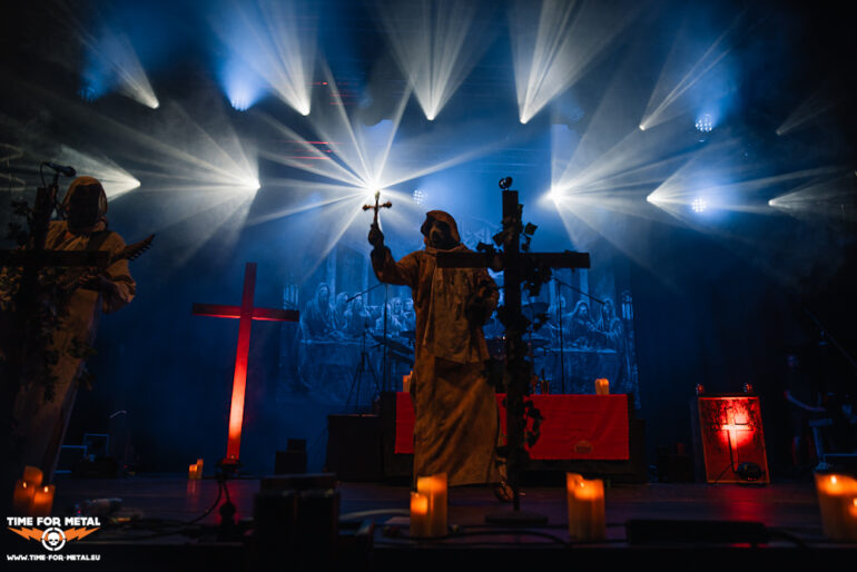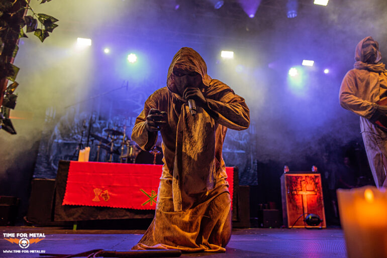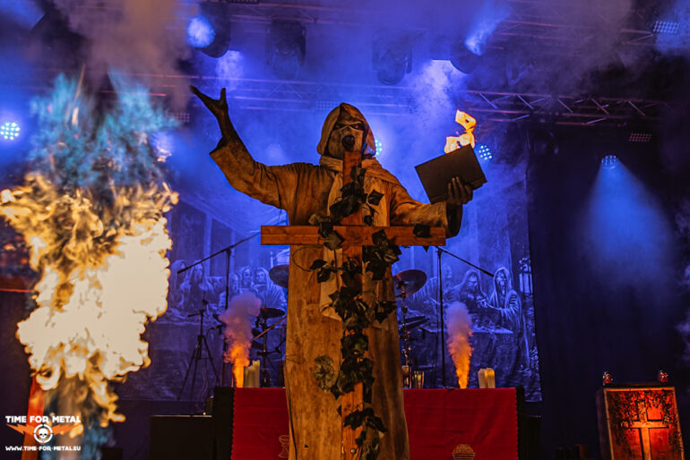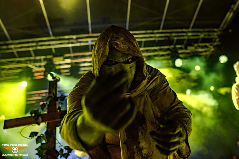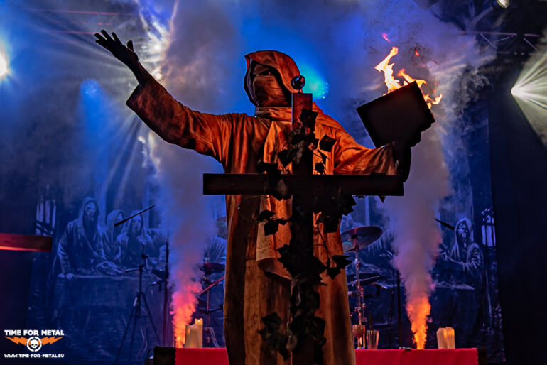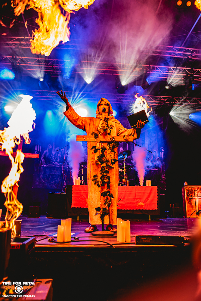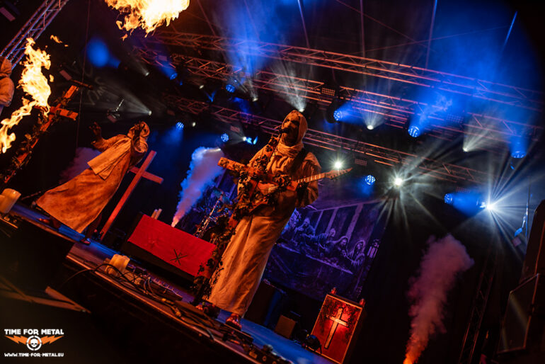Mittlerweile hat die Nacht Einzug genommen und Non Est Deus setzen alles daran, die Dunkelheit zu durchdringen. Mit meterhohen Flammen setzen sie die Baden In Blut Bühne in Brand, während sie ihren kompromisslosen Black Metal auf die Gäste abfeuern. Die Musiker stehen maskiert in Mönchgewandung auf der Bühne und Kreuze zieren das Bühnenbild. Alles wirkt stimmig, denn das Projekt kennt nur eine Thematik: Religion! Und das nicht im positiven Sinne. Mastermind Noise, der sich auch für Kanonenfieber verantwortlich zeigt, kritisiert in seinen Texten eben jene als Wurzel von Gewalt und Ausgrenzung, während er eine brennende Bibel in der Hand hält oder sich selbst geißelt.