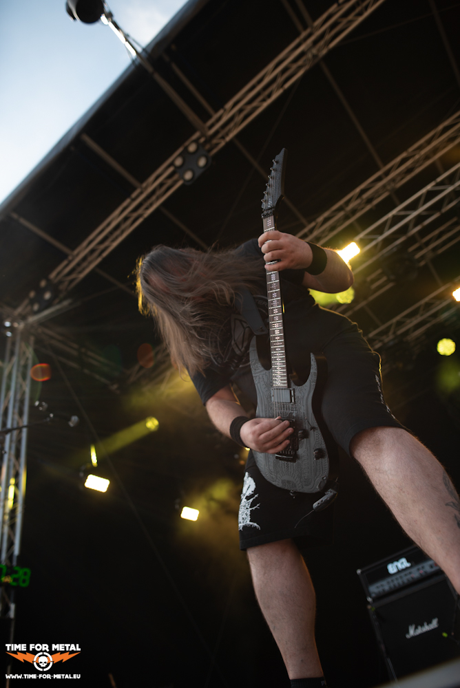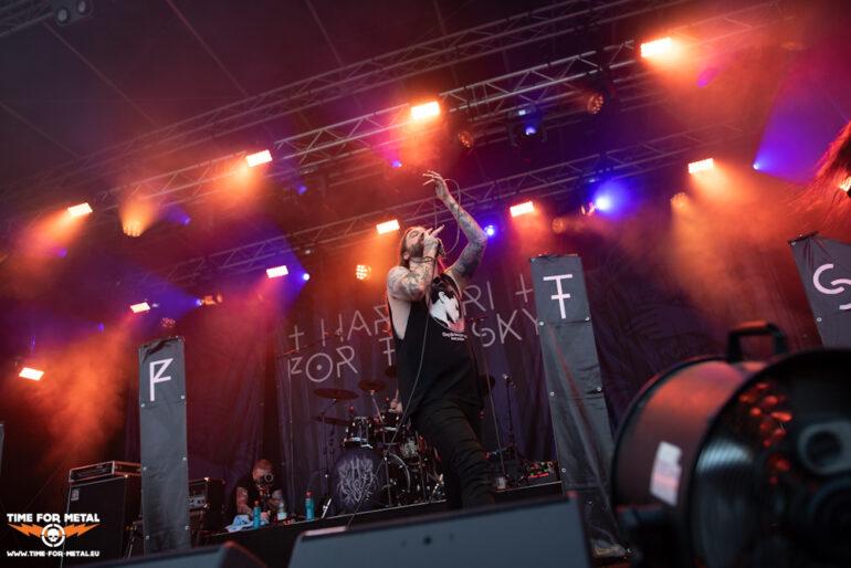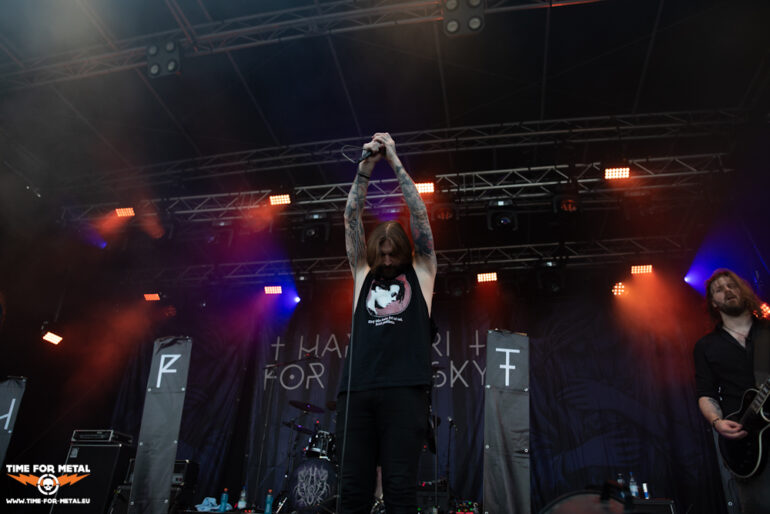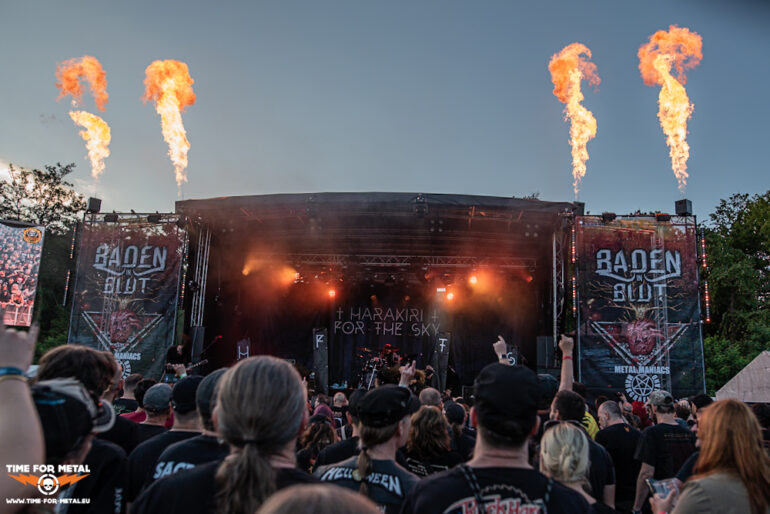So langsam nähert sich die Sonne dem Horizont und nach dem ganzen High-Speed-Geballer wird es Zeit für etwas Melancholie. Harakiri For The Sky sorgen für etwas atmosphärische Abwechslung an diesem Warm-Up-Donnerstag. Die Österreicher waren bereits 2017 schon einmal zu Gast auf dem Baden In Blut, doch seitdem sind J.J. und M.S. nicht untätig gewesen. Erst im Januar haben die Herren ihren neusten Longplayer Scorched Earth veröffentlicht, welches auch den größten Teil ihres Sets einnimmt. Funeral Dreams und Lungs Filled With Water, die man schon fast als Klassiker bezeichnen kann, reihen sich direkt dahinter ein und komplettieren die Setlist.