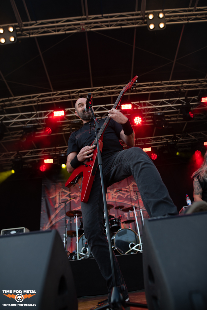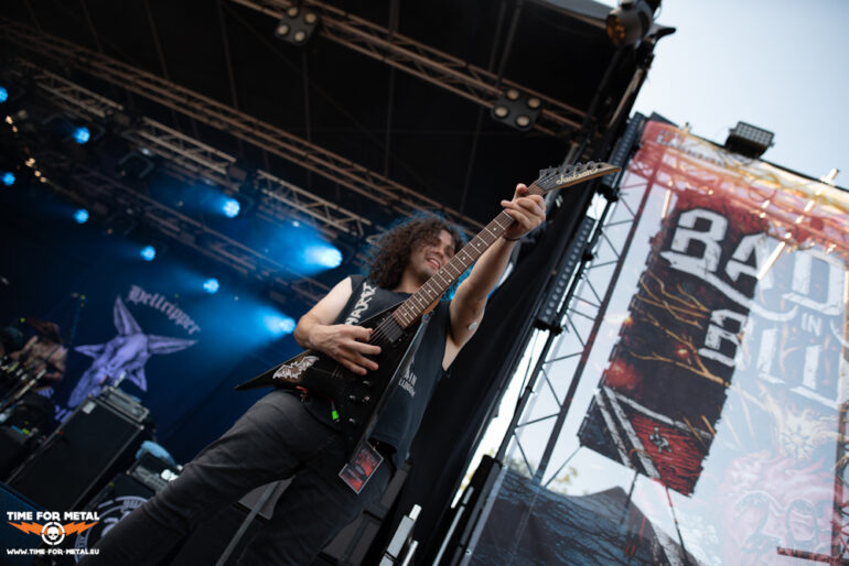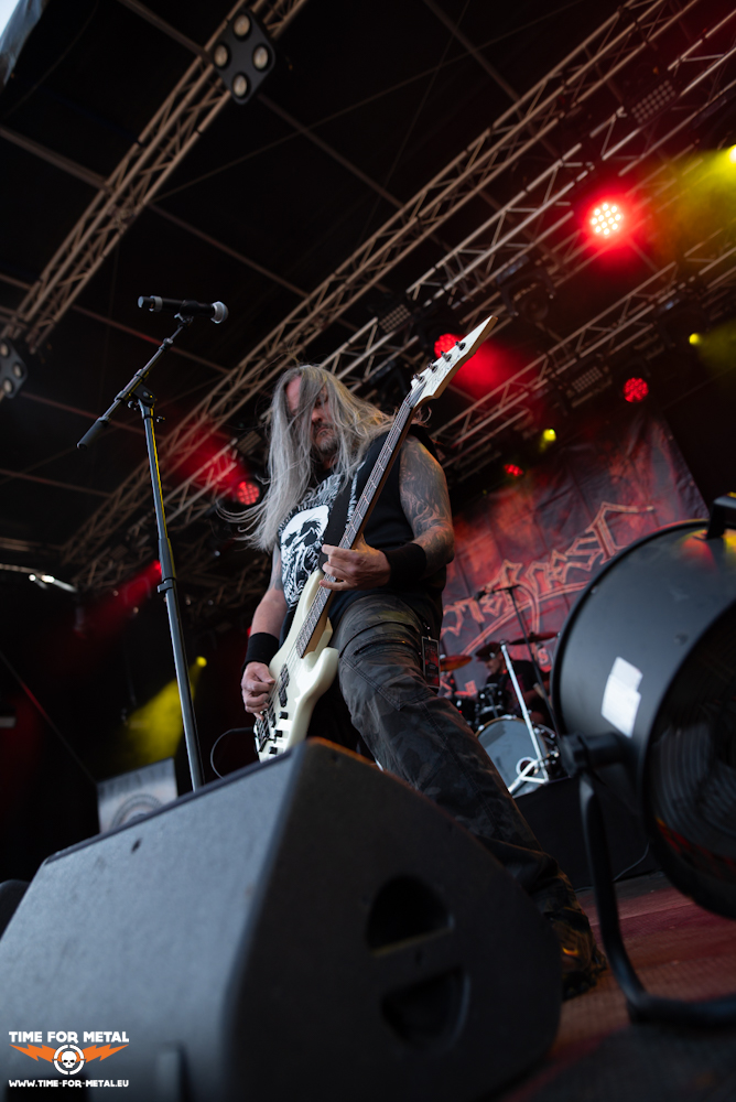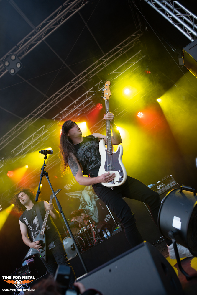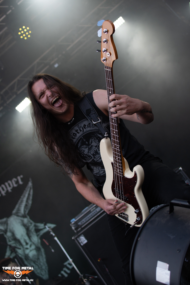 Nach diesem großartigen Nostalgietrip wird es nun Zeit für eine recht junge Band. Hellripper halten das Tempo hoch und feuern voller Freude ihren Black/Speed Metal auf das Publikum. 2014 als Ein-Mann-Projekt gegründet, wurde aus Hellripper mittlerweile eine vollwertige Band, die live unglaublich viel Spaß macht. Im Zentrum steht James McBain, der die Band gegründet hat und auch auf der Bühne sowohl Gesang als auch eine Gitarre übernimmt. Dabei versprüht der Musiker sichtlich gute Laune, was sich auch auf die Fans abfärbt und das Infield in einen einzigen Mosh-Zirkel verwandelt.