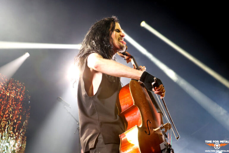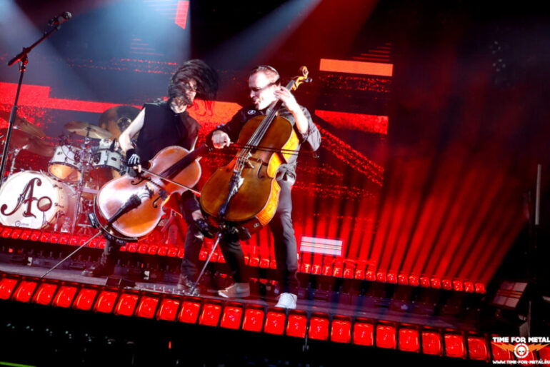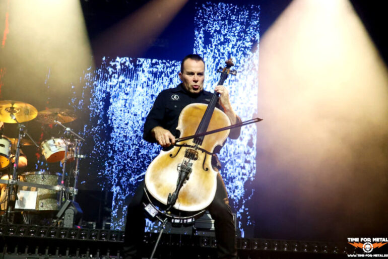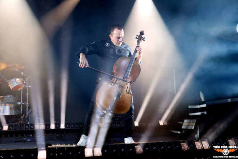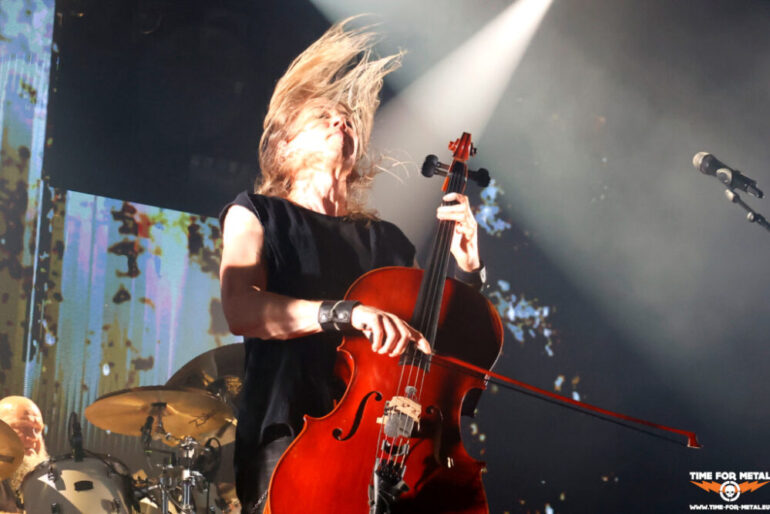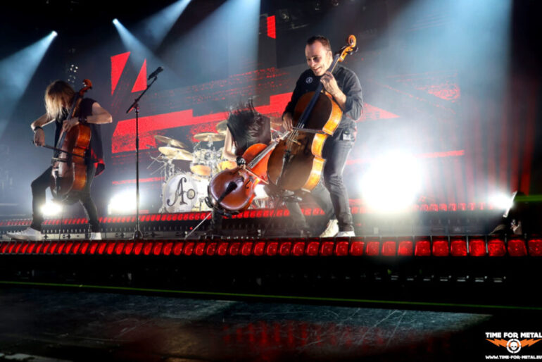 Um 20:30 Uhr müssen The Raven Age die Bretter räumen. Der Umbau ist schnell erledigt und ein weißer Vorhang versteckt die Aktivitäten auf der Bühne. Pünktlich um 21 Uhr geht das Licht aus und das bekannte The Ecstasy Of Gold von Ennio Morricone erklingt. Dann fällt der Vorhang und die drei Cellisten stehen auf einer Linie und zeigen, wie heavy ein Cello spielbar ist. Damit lässt sich sogar Ride The Lightning instrumental kreieren, auch wenn ohne die Drums der Rhythmus arg verloren gehen würde. Womit fange ich ein Publikum? Genau, die Mitsingnummern von Metallica vom schwarzen Album gehen an so einem Abend. Über das Original Enter Sandman gibt es mehr als genügend auseinandergehende Meinungen. Noch Metal oder doch schon Pop? Als Cello-Version bekommt das gute Stück eine ganz andere Atmosphäre und ist vom eigentlichen Metallica-Track meilenweit entfernt.