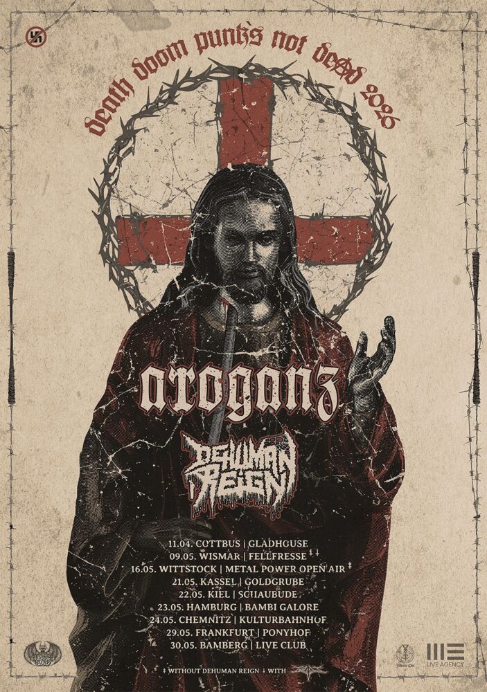 Arroganz, die neueste Band bei Testimony Records, hat soeben die ersten Konzerte zur Unterstützung ihres kommenden siebten Albums angekündigt. Die ostdeutschen Death-Doom-Punks werden von der Berliner Band Dehuman Reign begleitet.