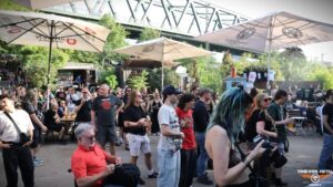 Es bleibt noch etwas Zeit nach dem Gig, um sich zu unterhalten, das gerade Erlebte richtig einzuordnen und sich bei einer Menge Freunden und Bekannten zu verabschieden. Viele der Anwesenden wird man nächsten Monat auf dem Hoflärm wiedersehen. Auch Sabine und Jan Oberg, die die letzten Jahre dort immer auf der Bühne waren. In diesem Jahr sind sie einfach nur vor der Bühne und zum Feiern da! Wir freuen uns auf ein Wiedersehen!