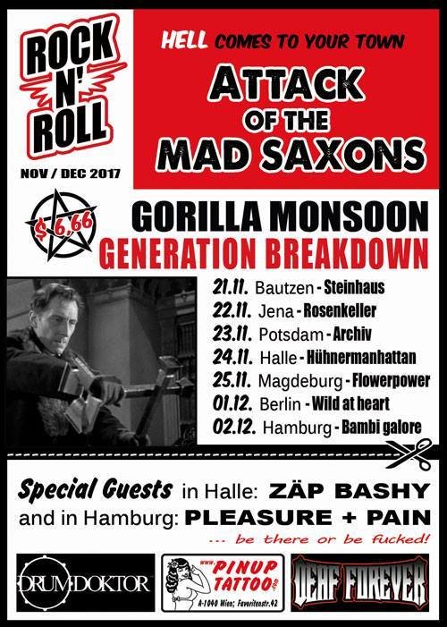 Am Samstag den 02.12.2017 um 20:00 Uhr könnt ihr Gorilla Monsoon, Generation Breakdown und Pleasure + Pain live im Kultur Palast Hamburg erleben.