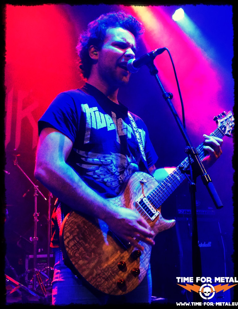 Pünktlich um 20:30 Uhr entern dann auch Vorbid aus Arendal in Norwegen mit dem Song Closed Casket die Bühne. Glücklicherweise haben sich zwischenzeitlich noch ein paar Thrash Metal Begeisterte eingefunden und das Le Grillen füllt sich weiter. Zunächst machen die Jungs ein wenig den Eindruck, als wären sie hier falsch gelandet und das eigentliche Flugziel wäre das Kinderland, doch schnell wird klar, dass der Old School Thrash Metal aus dem Land der Fjorde vollkommen Okay ist. Mit Songs wie Zombie und Invention Intervention vom noch aktuellen Album Mind setzt man sich gekonnt zwischen die großen Klassiker der Bay Area und klingt dabei doch erfrischend jung. Die progressiv gewürzten Songs machen durchaus Spaß und mit den beiden Gitarristen Emanuelsen und Briggs hat man Meister ihres Fachs in den eigenen Reihen. Knallharte Riffs und saubere Soli lassen durchaus den einen oder anderen Headbanger näher an die Bühne treten. Auch die häufigen Tempowechsel und interessanten Songstrukturen machen richtig Spaß und sorgen für ein kurzweiliges Vergnügen. Leider ist aber auch hier nicht alles Gold, was glänzt und Frontmann Michael Eriksen Briggs sollte sich in Zukunft besser aufs Gitarrespielen konzentrieren, denn das hat er drauf. Seine Vocals sind zwar so richtig schön schrill, sorgen sonst aber höchstens für hochgezogene Augenbrauen. Der schwachbrüstige Gesang, welcher besonders bei Crimson Crown so richtig auffällt, geht dann eher in die Richtung, ich will, kann aber nicht. Schade, denn ansonsten haben die Jungs durchaus das richtige Gespür für gute Songs. Nichtsdestotrotz, die noch junge Band schlägt sich recht gut und wird nach dem letzten Song, Garden Of Departure, fairerweise mit Applaus verabschiedet.