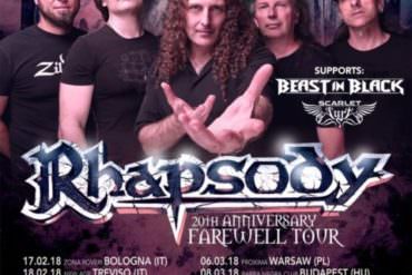 “Nostalgisches Zusammentreffen der erfolgreichsten Rhapsody Phase!“ Eventname: Rhapsody, 20th Anniversary Farewell Tour 2018 Headliner: Rhapsody Vorbands: Scarlet Aura, Beast In...