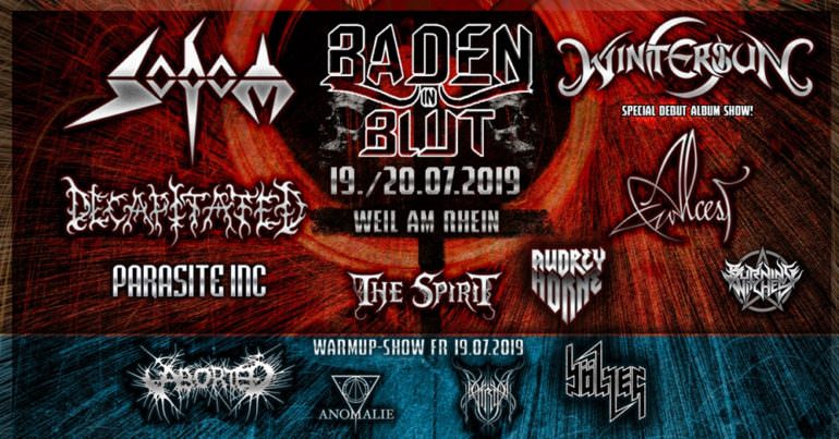 Vom 19.07. – 20.07.2019 wird der äußerste Zipfel Deutschlands im Südwesten zum 15. Mal in Blut getränkt. Das Baden In Blut Festival im Dreiländergarten in Weil am Rhein findet erstmals an zwei Tagen statt und wird somit noch größer, noch fulminanter, noch blutiger!