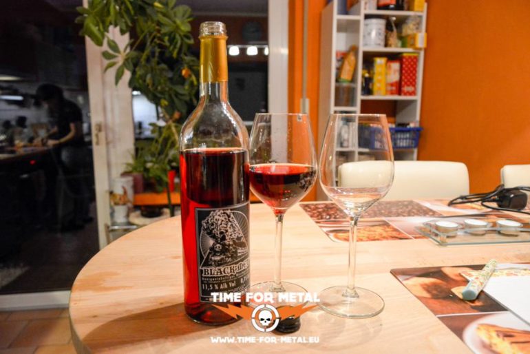 Nach dem Heavy Met und dem mit Chili gewürzten Death Met sorgen wir nun dafür, dass alle guten Dinge drei sind. Hier steht nun eine noch nicht geöffnete Flasche des Bruders der beiden Metal-angehauchten Honigweine. Heute gibt es jedoch nichts für Puristen und auch nichts für Freunde des Scharfen, denn Black Met kommt neben dem Death Train auf dem Etikett auch mit einer stark dunklen Farbe, die einen an einen etwas dünnen Rotwein erinnert – doch hat sich hier weder ein Rotwein, noch ein goldgelber Met versteckt. Die Farbe kommt daher, dass wir hier einen Cuvée (also eine Mischung) aus klassischem Met und einem Beerenwein aus Johannisbeeren in den Händen halten. So bekommt man nicht nur eine besonders auffällige Farbe, sondern auch eine angenehme Komposition, für diejenigen, die genug vom klassischen Met oder klassischen Beerenwein haben. So dann geht es nun zum dritten Mal in 24 Stunden an den Drehverschluss und ab in die Trinkgefäße.