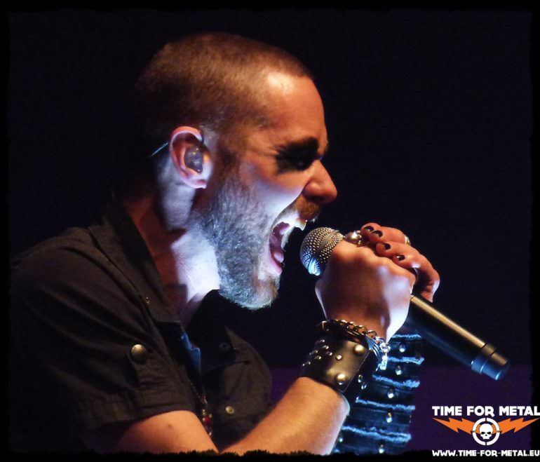 Nach nur kurzer Umbaubaupause geht es dann mit den schwedischen Kollegen von Dynazty weiter, die sich 2007 in Stockholm gründeten. Auch wenn man, so wie ich, die Band noch nie live gesehen hat, so kennt man doch zumindest den Sänger Nils Molin von Amaranthe her. Der Opener Breathe With Me vom aktuellen Album Firesign ist ein hochmelodischer Krachersong, ein perfektes Zusammenspiel aus Pop und Metal, mit einem Refrain, der auf Anhieb zündet. Mittlerweile haben sich vielleicht so etwa 450 Leute vor der Bühne eingefunden und die steigen auf den aufpolierten Melodic Rock voll ein. Ein guter Einstieg in das Set, den man jedoch mit dem folgenden The Northern End voll vor die Wand fährt. Der Stilbruch vom Melodic Rock zum Modern Metal bringt mich von jetzt auf gleich voll aus dem Konzept und auch vor der Bühne geht die Stimmungskurve stark in den Keller. Mit den Industrial und Nu Metal Elementen, Deathstars und Five Finger Death Punch lassen grüßen, konnte ich schon zu Renatus-Zeiten nichts anfangen. Trotz guter gesanglicher Leistung von Molin möchte ich schon jetzt behaupten, das Dynazty den Kollegen von Manimal nicht das Wasser reichen können. Auch den nächsten Stilwechsel zurück zum melodischen Rock in Follow me kann ich nicht nachvollziehen. Jetzt ist die Band wieder voll in ihrem Element, harte Rockriffs treffen auf leichte Doublebass-Attitüden, und kann auch wieder überzeugen. Ähnlich wie bei Manimal herrscht wieder ordentlich Bewegung auf der Bühne und die doppelte Gitarrenbesetzung in Form von Rob Love Magnusson und Mikael Lavèr sorgt für einen ordentlichen, satten Sound. Der Titeltrack des aktuellen Albums Firesign klingt mit seiner Elektronik ungewöhnlich, ist aber durchaus geeignet, seine Matte zu schütteln. Bisher ist der Auftritt ein waghalsiger Ritt, mit einem hohen Maß an Melodie, Härte, aber auch Vielfalt und ich bin gespannt, wie weit das Publikum bereit ist, diesen mitzugehen. Das ebenfalls aktuelle The Grey kann dann wieder mit einem sensationellen Refrain aufwarten, in den die ersten Reihen voll einsteigen. Sehr episch und opulent kommt dann Ascension daher. Dem Auftritt tut es definitiv gut, dass die Schweden sich nun auf das neue Material konzentrieren, auch wenn Ascension nicht ganz so leicht bekömmlich daherkommt. Der Song, der ein wenig klingt, als hätten Nightwish ihre Finger im Spiel gehabt, braucht einfach Zeit, damit sich die Klänge richtig entfalten können. Danach verschwinden die Musiker im Hintergrund der Bühne und die Spots sind auf George Egg und seine Schießbude gerichtet, der ein fulminantes Drumsolo abliefert und all seine Qualitäten präsentiert. Das moderne In The Arms Of A Devil wird ebenso begeistert aufgenommen und sorgt für Stimmung unter den Fans. Hier kommt die Stimme von Molin so richtig zur Geltung und fast möchte man ihm raten, seinen Job bei Amaranthe hinzuwerfen und sich mehr auf Dynazty zu konzentrieren. Bei diesen kraftvollen Rocksongs hat die Band alles zu bieten, was man sich als Konzertbesucher wünscht. Auch die modern gehaltene Powerballade mit Hymnencharakter The Smoking Gun hält nun die Stimmung hoch und unterstreicht einmal mehr die gute Stimme Molins. Danach gibt es wieder auf die Zwölf, doch trotz der Heavyness von The Human Paradox ist der Song extrem eingänglich und bietet eine super Melodie und geilen Refrain. Genau für solche Songs liebt man die Stockholmer. Bei Titanic Mass ist gemeinsames Ausrasten angesagt, bevor es dann beim abschließenden Starlight mit einem hitverdächtigen Melodiebogen wieder wesentlich moderner zur Sache geht. Nach dem Aussetzer The Northern End hat man glücklicherweise die Kurve gekriegt und konnte mit einem skandinavischen Hitfeuerwerk überzeugen. Gerne hätte ich noch älteres Hardrock / Sleaze Rock Material der Jungs gehört, doch man hat sich heute nur auf die letzten drei Alben konzentriert.