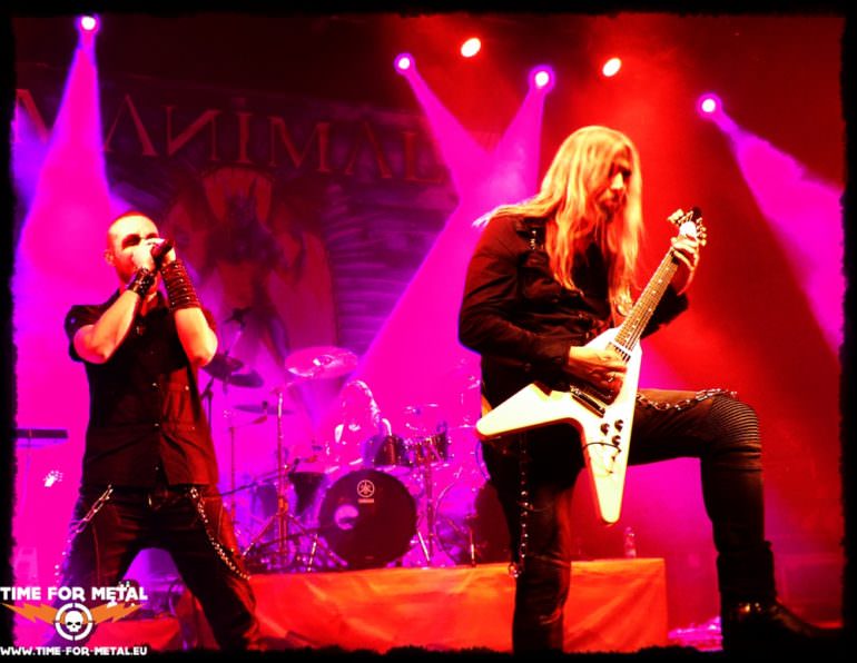 Punkt 20:00 Uhr geht es dann auch los mit den 2001 gegründeten Göteborger Heavy- / Power Metallern Manimal, die mit dem episch angehauchten Black Plague vom 2018er Album Purgatorio in ihr Set einsteigen. Die Jungs um Sänger und Frontmann Samuel Nyman geben direkt Vollgas und haben sich offenbar vorgenommen, den Laden zu zerlegen. Die Spielfreude der Schweden-Truppe springt direkt auf das Publikum über, das mit der Band offenbar bestens vertraut ist. Auch wenn sich nur etwa 200 Leute vor der Bühne versammelt haben, man ist definitiv in Feierlaune. Im Verlauf des Auftritts gibt es einen Querschnitt ihrer bisherigen drei Alben auf die Ohren. Spätestens mit Trapped In The Shadows hat man das Z7 im Griff und der Song macht auch klar, dass man nicht einfach nur einem Mix aus Judas Priest und Queensrÿche abspult, sondern das man auch eine ganz eigene, fast schon melancholische Note hat. Dazu passend ist auch das Outfit der Schweden mit den dick schwarz umrandeten Augen. Trotz dunkler Thematik sprühen die reinen Metalsongs vor Lebensfreude und machen Spaß. Für einen Supportact haben Manimal einen guten Sound, einzig das Licht lässt zu wünschen übrig, doch die etwas düstere Bühne passt gut zu den Songs. Samuel Nyman erweist sich als echte Rampensau und kann kaum mal einen Moment stillstehen, doch auch die Saitenfraktion in Form von Bassist Kenny Boufadene und Gitarrist Henrik Stenroos zeigen sich ziemlich aktiv und agieren laufend am Bühnenrand mit den Fans. Purgatorio stammt wieder vom aktuellen Output und knallt ordentlich aus den Boxen, jedoch fehlt der Nummer irgendwie der Wiedererkennungswert und zündet nicht so richtig. Das Highlight folgt dann aber mit Psychopomp, zu dem Nyman von der Bühne verschwindet, um kurz darauf in Zwangsjacke zurückzukehren. In seinem feinen weißen Zwirn und mit den schwarz umrandeten Augen sieht der Frontmann wirklich ein wenig wie ein entlaufener Psycho aus und es ist herrlich anzusehen, wie er so am Mikroständer rumturnt und sich dann der Zwangsjacke entledigt. Manimalized überzeugt mit Härte und eigenen Trademarks und kann einen super Spannungsbogen aufbauen. Das abschließende Irresistable fordert den Fans dann noch einmal alles ab und hier drängt sich der Vergleich zu Rob Halford zu besten Painkiller-Zeiten wieder auf. Allerdings zeigt sich auch, dass Nyman in den hohen Gesangslagen arg an seine Grenzen stößt. Auch Gitarrist Stenroos zeigt hier seine wahre Größe und tobt sich neben Nyman auf dem Rhythmusteppich von Bassist Boufadene und Schlagwerker Andre Holmqvist richtig aus; ein völlig überzeugender Gig, der rundum zufriedene Fans zurücklässt. Als Power Metalfan sollte man diese Band im Auge behalten!