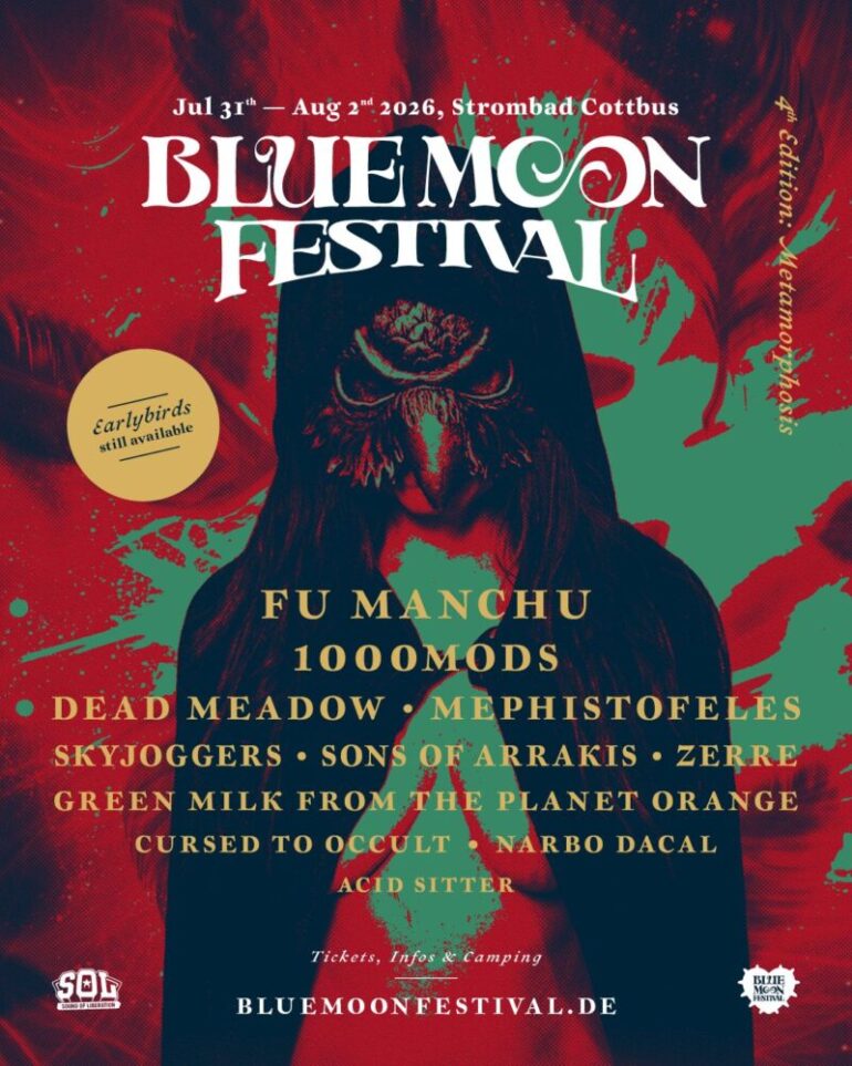 Ein neuer Zyklus beginnt. Während der Mond seine Richtung ändert und die Luft von Verzerrung erfüllt ist, enthüllt das Blue Moon Festival 2026 seine erste Transformation. Die bevorstehende Ausgabe – Metamorphosis – vereint eine beeindruckende Konstellation von Heavy-, Psychedelic- und Genre-übergreifenden Künstlern aus aller Welt. Ein Line-Up, geprägt von Riffs, Ritualen, Noise, Visionen und dem puren Underground-Spirit.