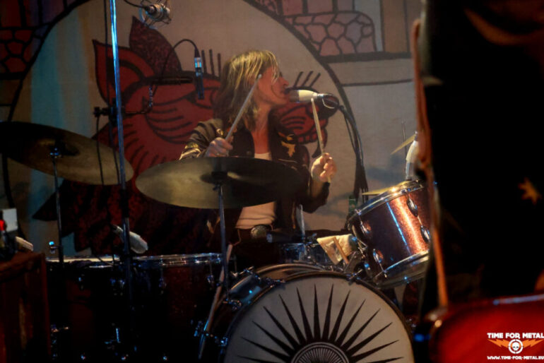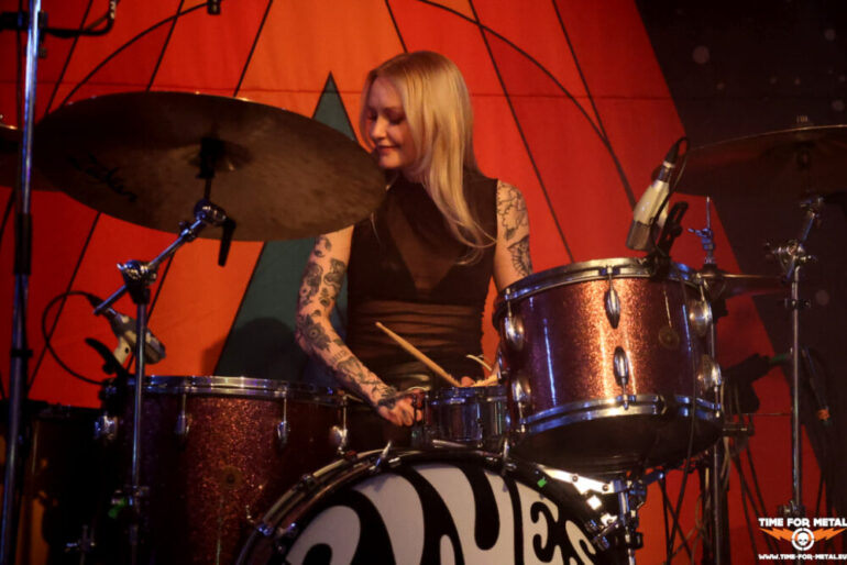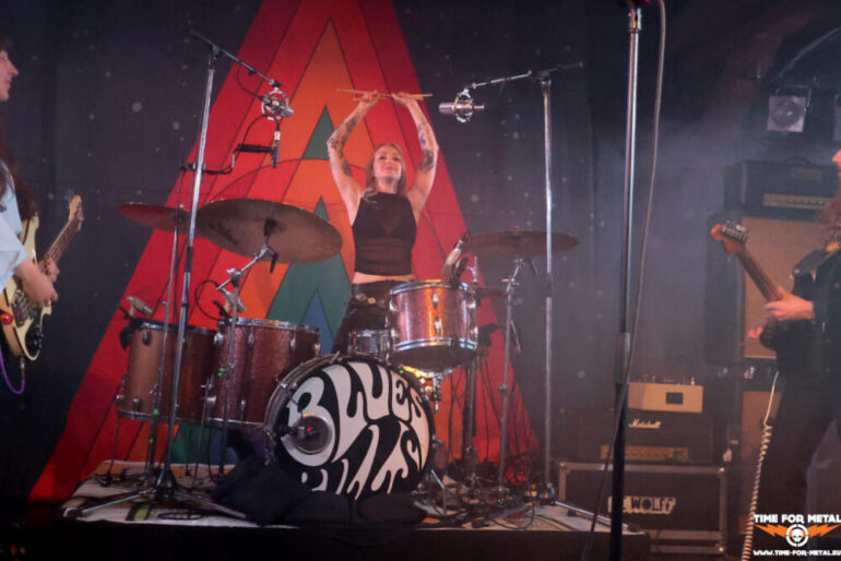 Für einen Freitagabend ist die Fabrik gut besucht und auch das Obergeschoss ist geöffnet. Der Umbau für Blues Pills benötigt etwas länger. Das Intro will nicht starten und die Session-Drummerin Lina Anderberg, die den bei einem Motorradunfall verletzten André Kvarnström seit einiger Zeit vertritt, bekommt das Ding nicht zum Laufen. Irgendwann sind die technischen Probleme behoben und neben Anderberg gibt es am Bass mit Agnes Röslund ein neues Gesicht. Kristoffer Schander hat Blues Pills kurz vor der Tour verlassen und Röslund spielt heute ihren ersten Gig überhaupt mit der Band. Da auch Gitarrist Zack Anderson nicht der große Showmensch ist, fühlt sich der Auftritt von Blues Pills wie die Elin-Larsson-Band an, wobei die Mitmusiker:innen im Hintergrund agieren. Natürlich stand Larsson schon immer im Mittelpunkt von Blues Pills. Der Veränderungen im Bandgefüge haben die Instrumente noch weiter aus dem Blickfeld der Fans geschoben. Alles ist auf Larsson fokussiert. Allerdings füllt Larsson die Bühne mit ihrer unbändigen Energie problemlos aus und springt nicht nur einmal ins Publikum oder singt mit ihren Fans die Stücke gemeinsam. Trotzdem ist es schade, dass Blues Pills anscheinend eine One-Woman-Show geworden sind.