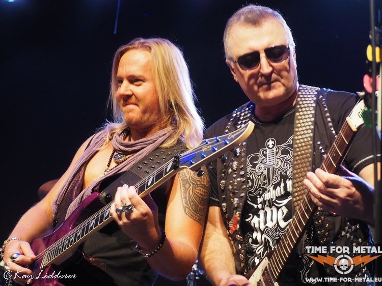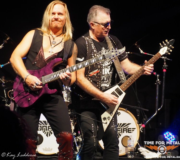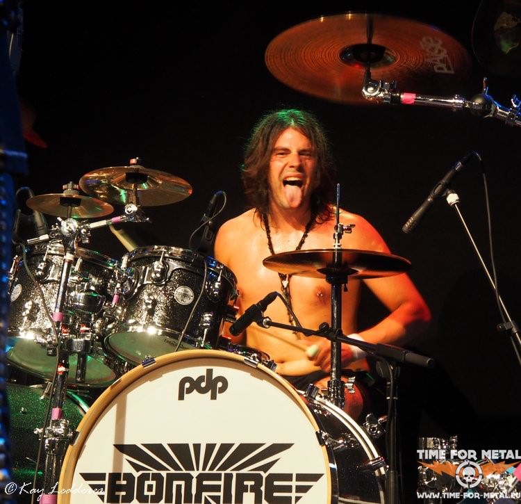 Nach einem weiteren Song von Point Blank, kommt SDI. Nun sind alle wach und vor der Bühne wird sogar etwas geheadbangt. Das scheint für viele ein bekannterer Song zu sein, und so wird der Refrain S.D.I., Killers In The Sky laut mitgesungen. Das gefällt auch der Band gut und die legen mit Sweet Obsession nach. Auch das stammt aus den später Achtzigern und es wird klar, dass diese Band sich nicht vor den anderen Größen dieser Zeit zu verstecken braucht. Trotzdem sind Bonfire durch verschiedenste Einflüsse nie so bekannt geworden wie andere deutsche Bands aus dieser Zeit. Schade eigentlich, denn dass, was hier und heute geliefert wird, ist es wert gehört zu werden. Deutscher Hard Rock, der unterhaltsam und nie langweilig ist. Letzter Song ist dann Ready 4 Reaktion und die Fünf verabschieden sich zunächst. Aber das Publikum, angefixt von der guten Leistung, der tollen Musik und der top aufspielenden Musiker, holt Bonfire für zwei Zugaben zurück. You Make Me Feel und Champion beschließen den Abend.