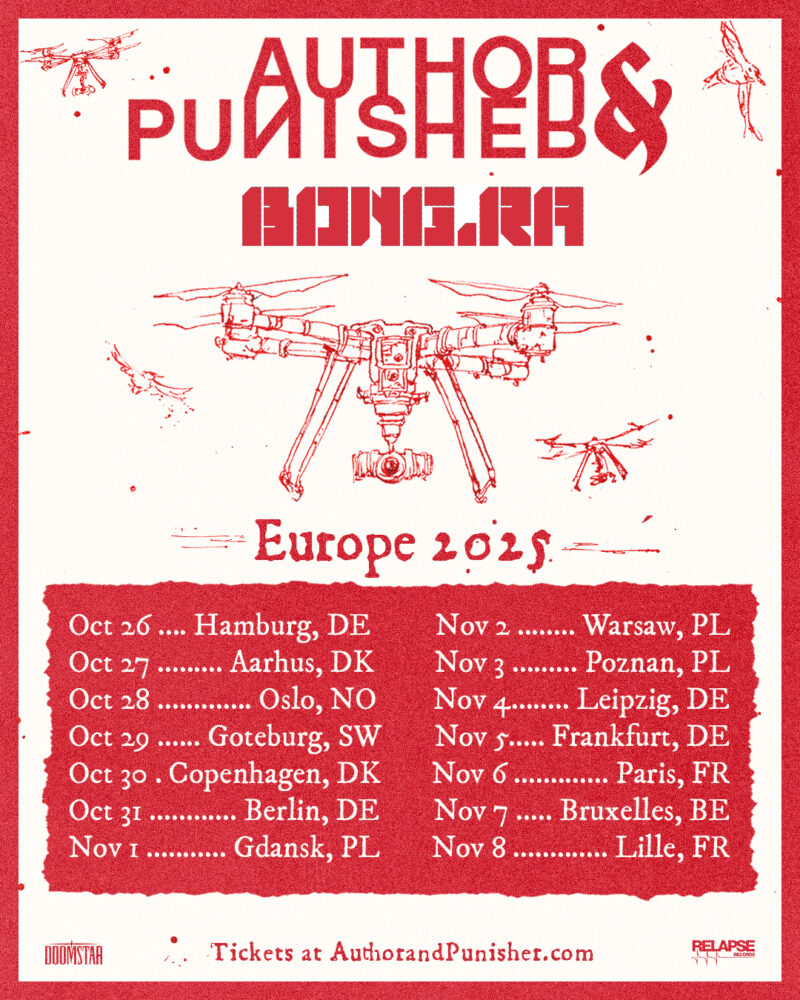 Jason Köhnen kommentiert die Tour: „Author & Punisher and Bong-Ra have a history together and go back more than a decade when Bong-Ra also supported A&P on their first EU tour, which lead to Bong-Ra remixing A&P’s Terrorbird and Flesh Ants tracks back in 2014. On this tour Bong-Ra will perform as a duo, instead of the regular trio. Due to personal reasons guitarist Botond Fogl is not able to join the tour, therefore Attila Kovacs will take both guitar parts for his account. The A&P tour will contain some more breakcore parts to it, seeing the remix album will be released on DMP early September, so these compositions will appear in the live set.“