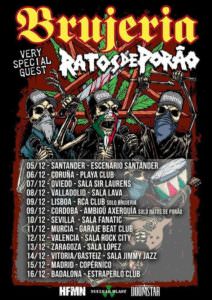Gut zwei Jahre sind bereits seit der Veröffentlichung ihres aktuelles Werks Pocho Aztlan ins Land gezogen: Nach zahlreichen Shows auf der ganzen Welt wird das mexikanische Todeskommando Brujeria nun im Dezember 2018 erneut auf die iberische Halbinsel zurückkehren, um dort zwölf Clubs heimzusuchen und seine Deathgrind-Granaten in die Menge zu schmettern. Dabei werden ihre brasilianischen Genossen Ratos De Porão als Support fungieren. Alle Termine gibt es unten.