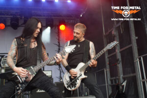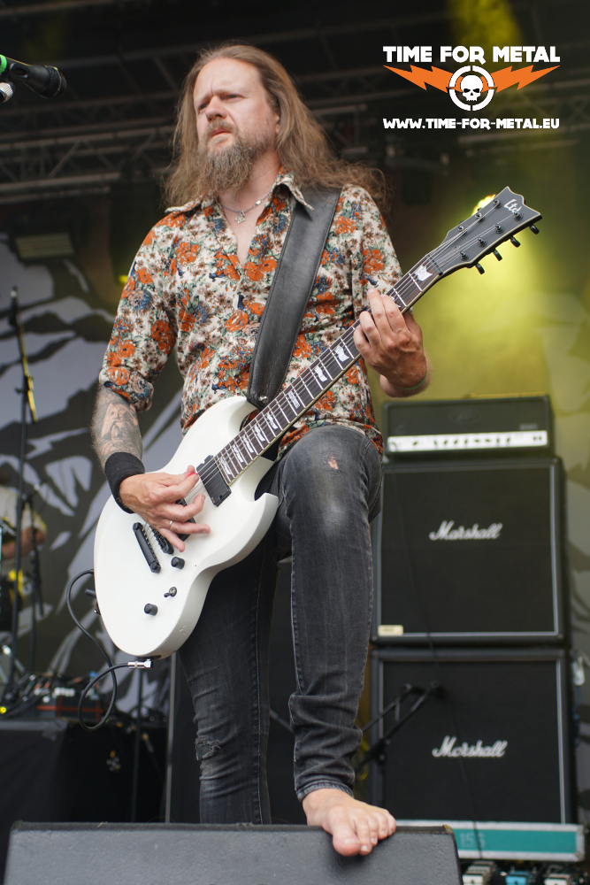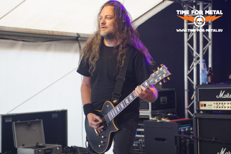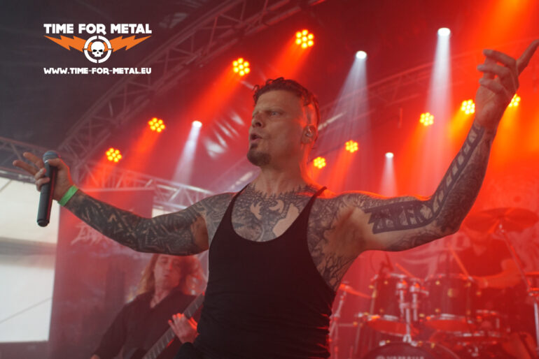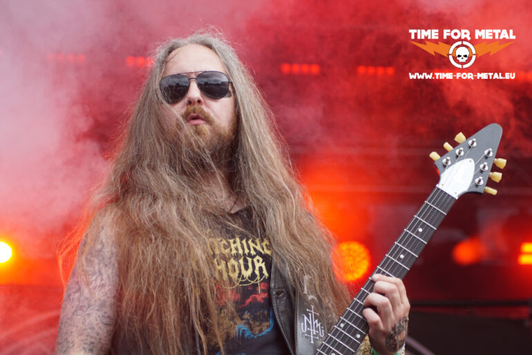 Es zieht mit The Crown ein Death-Metal-Gewitter aus Schweden auf. Die Jungs von Sarcator schauen gespannt zu. Dichte Reihen bis zum Mischpult werden flink gefüllt. The Crown sind noch da, und wie ich finde, zum Glück nicht vergessen. Ein lautes „Deutschland, wir sind zurück“ hallt über den Platz. Die Jungs von The Crown haben richtig Bock, bei dem wirklich beachtlich hohen Interesse kein Wunder, immer wieder zieht es Sänger Johan Lindstrand und die Musiker auf die Boxen im Bühnengraben, um noch näher an den Fans zu sein. An den Seiten zaubern Marko Tervonen und Robert Österberg feinen Todesblei. Old but Gold. Die Neunziger-Schweden-Death-Metal-Handschrift wurde von The Crown mitgeformt. Oft unterschätzt und von Kennern vergöttert, lassen die Männer aus Trollhättan nichts anbrennen und legen die Messlatte hoch.