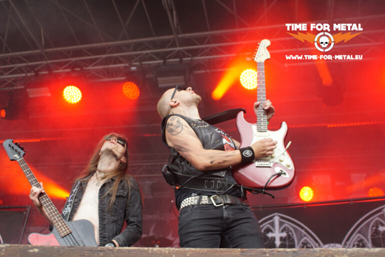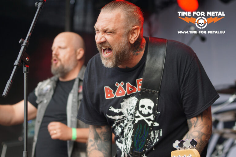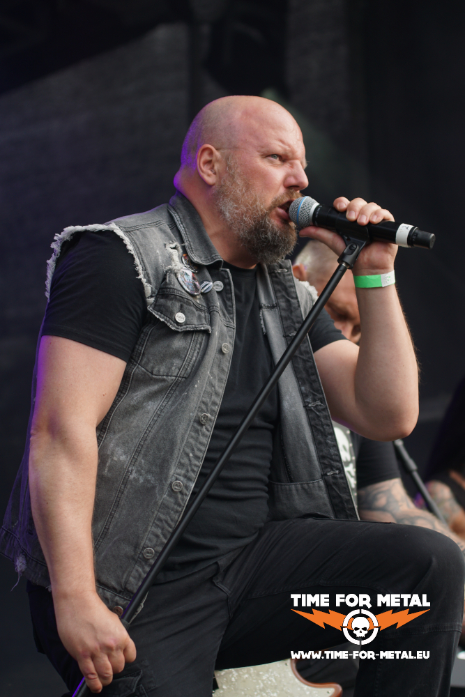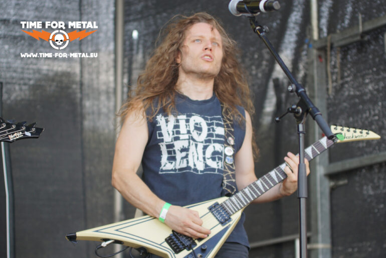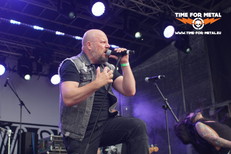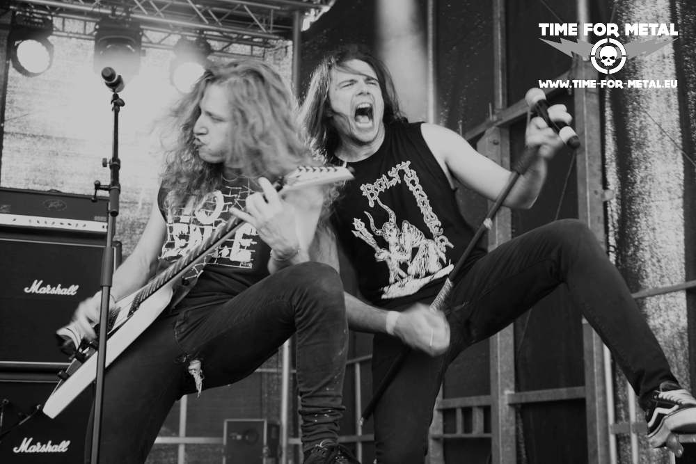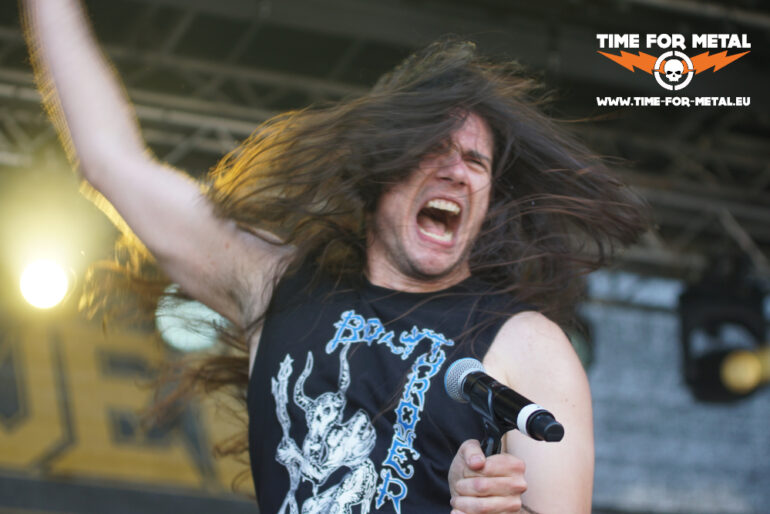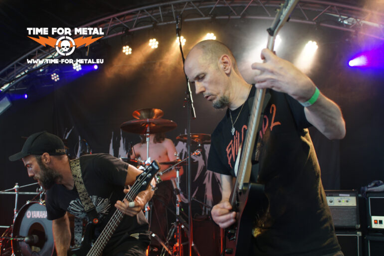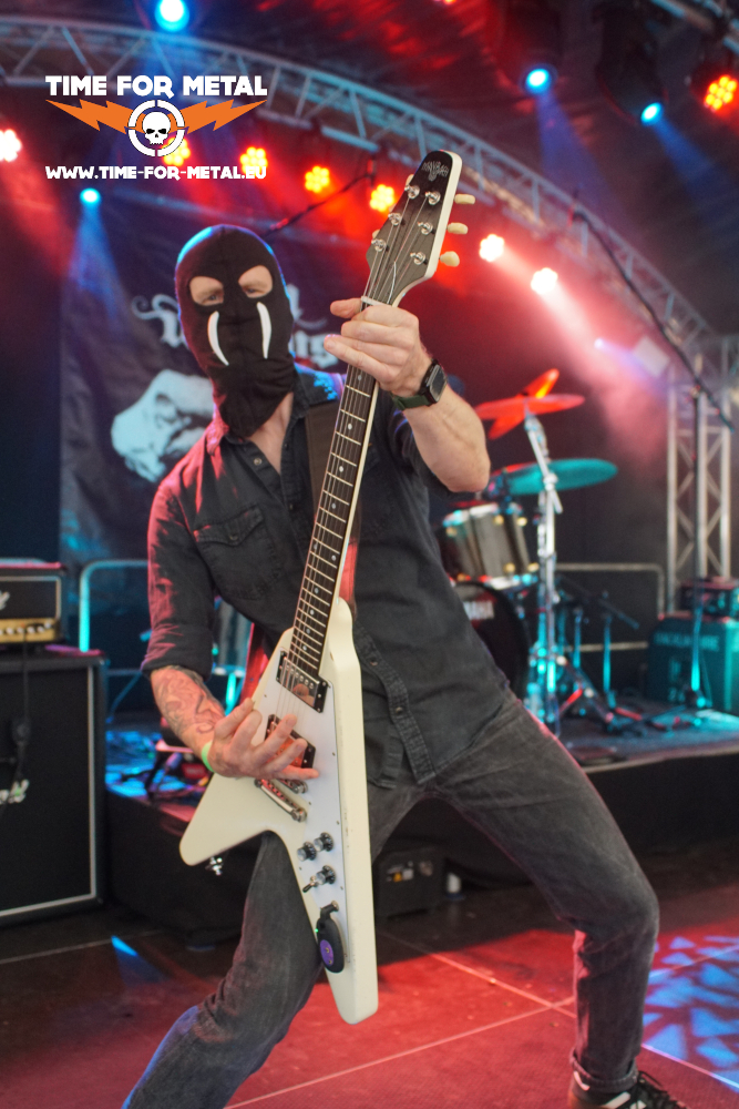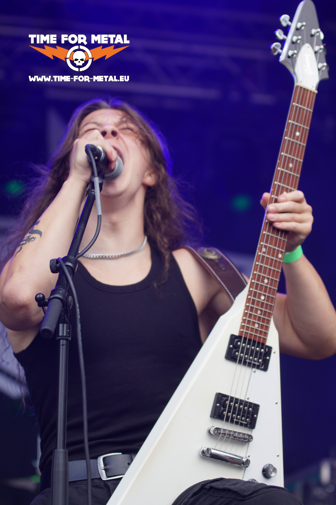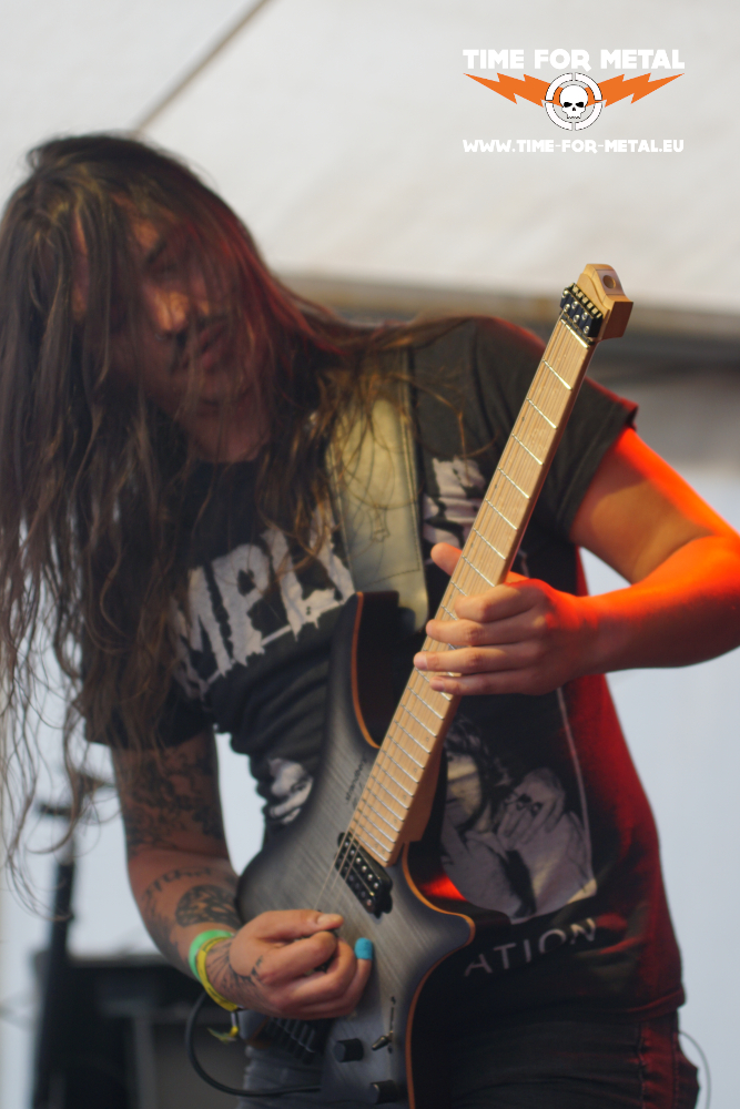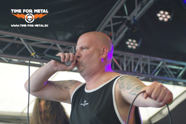 Opener der Mainstage bekommen sie auch kein leeres Schlachtfest vorgelegt. Natürlich ist es nicht so voll wie noch am gestrigen Abend. Die Thrash-Metal-Fans haben sich dennoch zahlreich versammelt, um zu erblicken, was Sänger Danny Schiavina und sein Gefolge schon auf die bebenden Bohlen zaubern können. Ca. 200 Headbanger bewegen sich im Takt. Der Mitte des Neunziger-Genres steht den Jungs gut zu Gesicht. Nicht zu hohe als auch nicht zu tiefe Vocals von Danny stimmen die Tracks an. Ein guter Auftakt unter freiem Himmel.