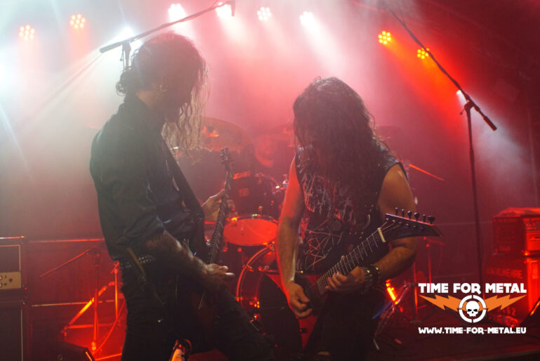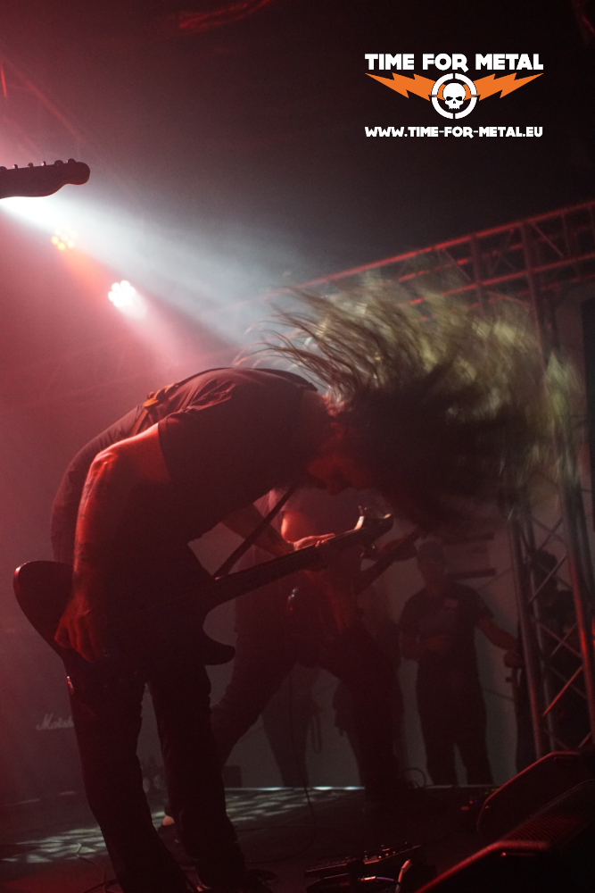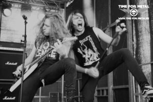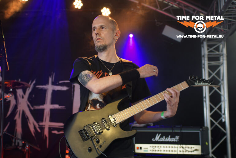 René W.: Mit Sarcator steht die nächste junge Truppe auf dem Programm. Ähnlich wie die Italiener Game Over zieht es die Schweden in die Thrash-Metal-Schiene. Ein kleiner Unterschied ist die pechschwarze Strähne, die sich durch ihre Kompositionen zieht. Die Skandinavier drücken Swarming Angels & Flies aus den Lautsprechern. Mateo Tervonen, Sänger und Gitarrist, hat schon eine starke Bühnenpräsenz. Wem beim Namen Tervonen was klingelt, liegt richtig. Marko Tervonen ist sein Vater und Gitarrist der schwedischen Todesblei-Formation The Crown, die wenig später dieselbe Bühne entern wird. Bis dahin schieben Sarcator ihr Set flink und agil übers Burning-Q-Gelände. Das schnörkellose Old-School-Klangbild kommt gut an, ein Newcomer mit Perspektive. Sehr kompromisslos und mit einem klaren Finale zum Ende.