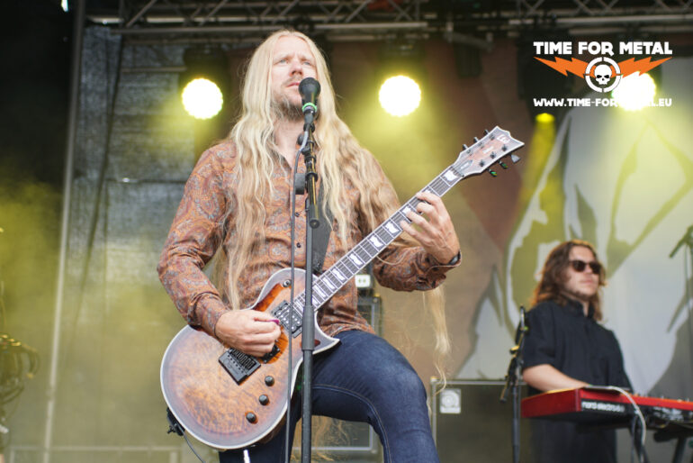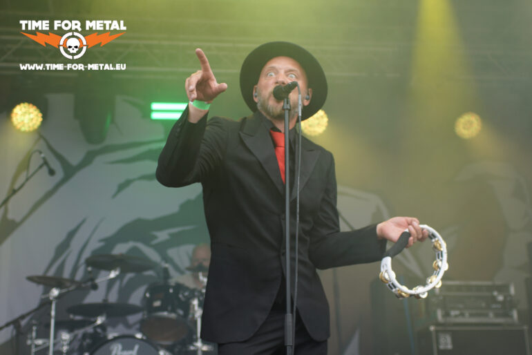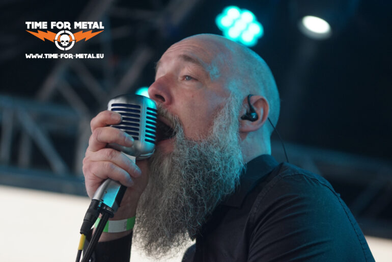 Jürgen S.: Mit Vulture Industries kommt nun eine Band auf die Mainstage, die sich durch ihre einzigartige Mischung aus avantgardistischem Metal, dunklen Klängen und künstlerischer Vielseitigkeit einen besonderen Platz in der Szene erobert hat. Die norwegische Formation betritt die Bühne mit einer Präsenz, die die Blicke auf sich zieht. Sänger und Multi-Instrumentalist Bjørnar E. Nilsen führt die Band mit einer faszinierenden Mischung aus charismatischer Ausstrahlung und musikalischer Vielseitigkeit an. Der Sound von Vulture Industries ist schwer zu fassen – eine dichte, atmosphärische Klangwelt, die Elemente aus Progressive Metal, Gothic, Industrial und experimentellen Klängen vereint. Damit zieht die Band das Publikum in ihren Bann. Die Songs sind durch komplexe Arrangements, kraftvolle Riffs und Nilsens markante Stimme geprägt. Der Frontmann selbst springt von der Bühne und über den Fotograben und zieht die Fans mit in das Geschehen ein. Die Band ist sehr interessant, ich denke, im Abend- / Nachtlicht käme die Band noch einmal anders rüber. Aber auch so sind die Fans sehr angetan von Vulture Industries.