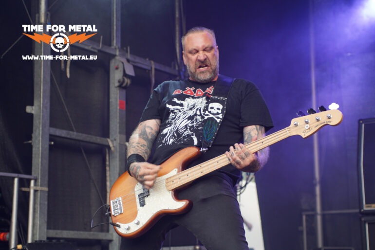 René W.: Mit einer kürzeren Anreise aus Osnabrück haben Iron Walrus ein indirektes Heimspiel. Der Doom Sludge Noise Metal füllt das Zelt heute erstmals richtig gut. Selbst im Außenbereich schieben sich die Besucher zu den pechschwarzen Walrossen. Schleppend, groovend, mit einem charismatischen Sänger Aufi, der die Bühne permanent beackert, liefert die tierische Rasselbande eine unterkühlte Show. In diesem Fall ist die frostige Stimmung positiv zu bewerten. Nach dem erdrückenden Start mit X Dimensions und I Hate People lassen die Niedersachsen nicht nach. Es folgen im weiteren Verlauf Dead Spot und Take Care. Die Stimmung könnte nicht besser sein und das aufgeheizte Zelt platzt aus allen Nähten. Mit Blessed schlägt das neun Song lange Set mit einem lauten Knall die Iron-Walrus-Türe zu.