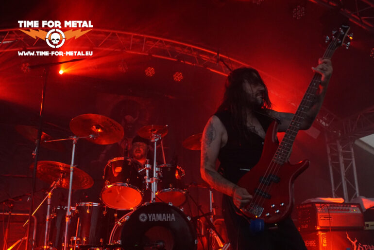 Es ist ein besonderer Moment, als die brasilianische depressive Black Metal Band They Light um ihre Hauptprotagonisten Paolo Bruno und Alex Witchfinder die Bühne betritt. Die Atmosphäre ist bereits vor ihrem Auftritt von einer tiefen Melancholie durchdrungen, die perfekt zu ihrer düsteren Musik passt. Die Bühne ist in dunklen Rottönen gehalten, welche gespenstische Schatten werfen. Dazu zieht die Band mit einer ruhigen, fast zerbrechlichen Präsenz die Menge in ihren Bann. Atmosphärische und langsame Klänge erzeugen eine besondere Stimmung im dunklen Zelt. Die Musik ist geprägt von schleppenden Riffs, melancholischen Melodien und einer emotionalen Tiefe, die den Zuhörer tief berührt und fast erstarrt zurücklässt. Die Fans reagieren still und respektvoll, lassen sich von den tiefgründigen Klängen mitreißen und zeigen ihre Anteilnahme durch leises Nicken und aufmerksames Zuhören. Mit ihrer tiefgründigen Musik beweisen Thy Light, dass Black Metal viel mehr sein kann als nur aggressive Energie.