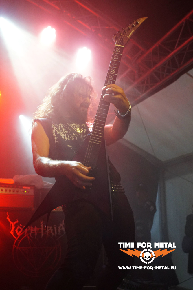 Die Abrissbirne des Festivals hat einen Namen, Yoth Iria. Die Griechen sind von der ersten Sekunde an nicht mehr einzufangen. Für viele die Überraschung und Überflieger des Wochenendes. Sänger Orestis Oikonomopoulos ist ein Monster und das liegt nicht am Corpsepaint. Er wälzt sich emotional über die Bühne. Theatralisch geht er ans Limit. Klettert die Bühnenbeleuchtung hoch, springt in den Graben und in die Menge. Dazu zieht es ihn immer wieder zur ersten Reihe, in der er nach den Händen der Besucher greift. Der diabolische wie düstere Black Metal lebt von einer kristallisierenden Atmosphäre, die durch Orestis Oikonomopoulos ein menschlichenähnliches Gesicht bekommt. Nach dem Blazing Inferno bleibt einem die Spucke weg. In The Tongue Of Birds zieht weite Kreise und nach Hermetic Code fragt man sich ganz bewusst, ob das alles gerade wirklich passiert ist. Viel zu früh ist mit dem Rotting Christ-Cover Non Serviam Schluss. Im Herbst kommen Yoth Iria zurück nach Deutschland und werden Nailed To Obscurity auf ihrer Headlinertour begleiten.