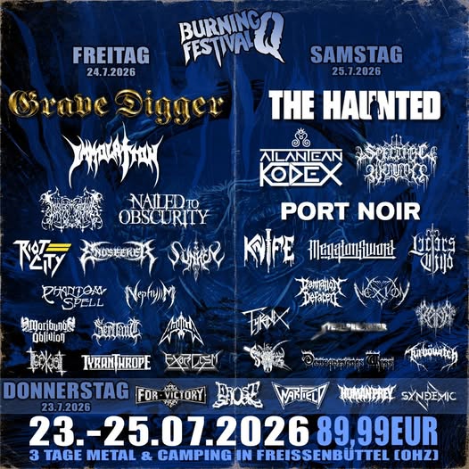 Am 23.07. und 25.07.2026 wird Freißenbüttel erneut zur Austragungsstätte für Metal-Fans, die sich auf eine explosive Mischung aus verschiedenen Genres freuen können. Sichert euch frühzeitig Tickets, die Auflage 2025 war bereits Wochen vor dem Open Air ausverkauft und auch für 2026 läuft der Vorverkauf für den Veranstalter sehr gut. Es sind bereits mehr als 80% der Burning Q Tickets verkauft.