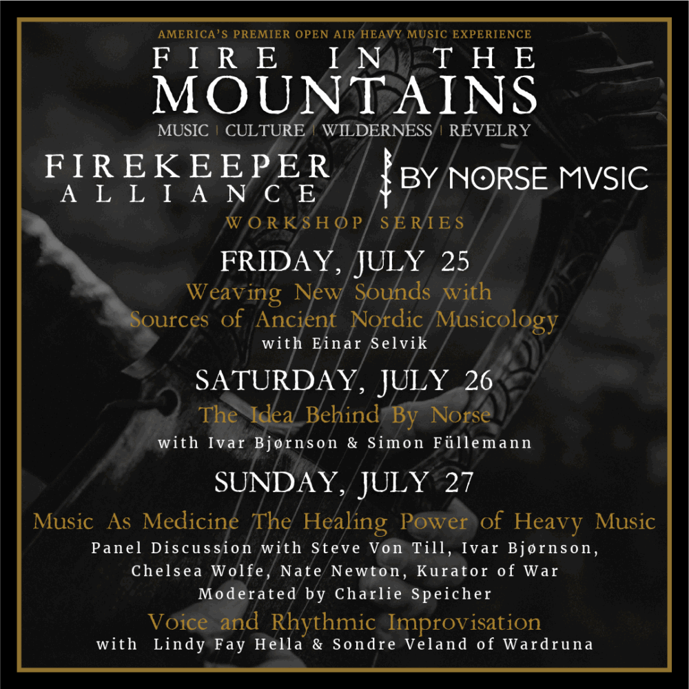 Im Rahmen des bereits angekündigten Nordic Night Showcase wird By Norse Music eine Reihe von Workshops beim Fire In The Mountains 2025 organisieren, das auf dem Stammesland der Blackfeet Nation in Montana, USA, stattfinden wird. Mitglieder der Band Wardruna werden zusammen mit den Gründern des Labels und der Plattform By Norse Music eine Vielzahl von musikbezogenen Workshops leiten.