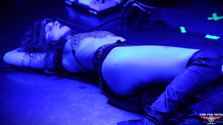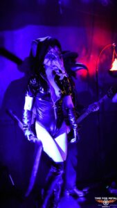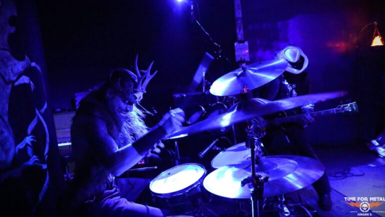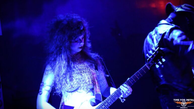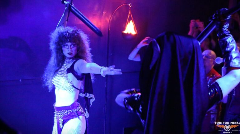 The Druid am Schlagzeug hält es nicht immer auf seinem Hocker hinter der Schießbude aus. Sehr oft verprügelt er dies in seiner Druiden Aufmachung auch im Stehen. Die Band, die sich 2019 gründete und mit Into The Realm erst einen Longplayer am Start hat, weiß mit solchen Songs wie Dagger Dragger, Feed The Dream oder Nightblood zu beeindrucken. Die Scheibe musste bereits mehrfach auf Vinyl und anderen Tonträgern neu aufgelegt werden und sie ist trotzdem schwer zu bekommen. Die Band hat das Vinyl heute allerdings am Merchstand dabei, sodass viele Fans heute freudig überrascht sind und die Scheibe mitnehmen. In den Starlöchern ist bereits das Nachfolgealbum mit dem Titel The Bestiary, welches am 19.09.2025 erscheinen wird. Am Merchstand ist auch eine Lady, die sich The Rat Reaperess nennt und auf der Bühne den Gegenpart zur Rat Queen performt. In Lack und Leder und einer riesigen Rattenmaske setzt sie das eine oder andere Mal der Rat Queen erheblich zu. Mit einem Schwert streckt sie am Ende der Show die Rat Queen auch äußerst dramatisch zu heftigen Doom Klängen zu Boden. Diese liegt dort dann einige Zeit, wird Ratte sei Dank, wiederbelebt und kann sogar noch eine Zugabe geben.