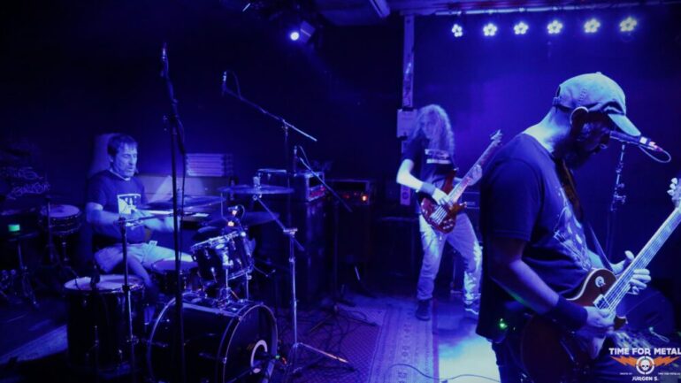 Der Gig beginnt mit dem Stück Storm, mit dem sie die anwesende Fan-Gemeinde bereits im Sturm erobern. Kraftvoll und, wie bereits beschrieben, richtig erdig. Stargo haben mit Parasight (2020) und Dammbruch (2021) bereits zwei Veröffentlichungen herausgebracht. Dammbruch gibt es am Merchstand auch als Vinyl. Der Titelsong mit fast 15 Minuten Länge steht auf der heutigen Setlist. Er ist ein gewaltiger Monolith und spätestens hiermit ist der Damm gebrochen. Ach was, die Fans feiern das Trio von der ersten Minute an. Dammbruch ist ein schönes Beispiel, wie sich ein Instrumental (Stoner) Song richtig geil entwickeln kann. Das Trio, welches wohl schon seit 2008 besteht, zeigt sich hier bei seinem Gig sehr spielfreudig und man kann sich einige neue Fans erspielen. Stoner Rock und Metal mit Abwechslungsreichtum. Der Sound der Band pendelt zwischen brachial treibend bis psychedelisch verträumt, von geradlinig bis kosmisch versponnen. Stargo servieren uns sechs Songs über ca. 50 kurzweilige Minuten, die richtig Spaß machen.