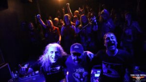 Da tummelt sich jetzt einiges neben, vor und auf der Bühne. Dann geht es auch schon los. Im Mittelpunkt steht hier natürlich The Rat Queen, die an der Gitarre und mit ihrer Stimme die rattenscharfe Ober-Ratte ist. Die junge Dame mit einer Menge Sexappeal heißt mit bürgerlichem Namen Riley Maureen Pinkerton McCurry und ist die Tochter des bekannten Songwriters und Gitarristen John McCurry (u.a. Alice Cooper, Julian Lennon, The Vandals). Ihr zur Seite stehen The Plague Doctor (Bass), The Druid (Schlagzeug) und The Count (Gitarre). Alles nette Kunstfiguren und auch tolle Musiker. Bei allen handelt es sich bereits um die zweite Generation an Instrumentalisten bei Castle Rat. Der Gig ist eine tolle Fantasyshow der Band, bei der die Musiker geschminkt sind, bzw. eine Maske tragen (The Plague Doctor). Castle Rat zeigen sich hier richtig energiegeladen und bieten eine Art unmittelbare Intensität. Die Fans stehen mit aufgerissenen Mündern und Augen vor der Bühne und sind von der Darbietung fasziniert. Obwohl es natürlich eine einstudierte Show ist, spiegelt ihre Musik ein rohes und ungeschliffenes Gefühl wider. Ihr Fantasy Doom sucht in der Musikwelt sicherlich seinesgleichen und bewegt sich zwischen episch, doomigen und wilderen, energiegeladenen Soundgefügen.