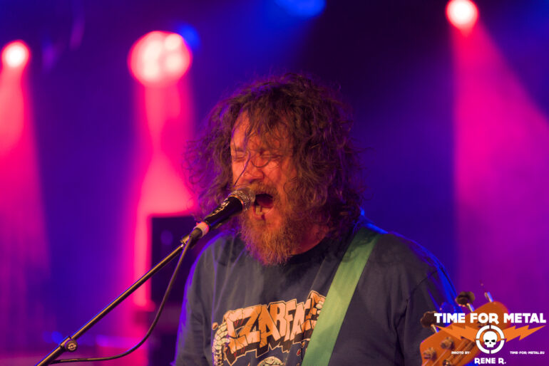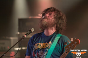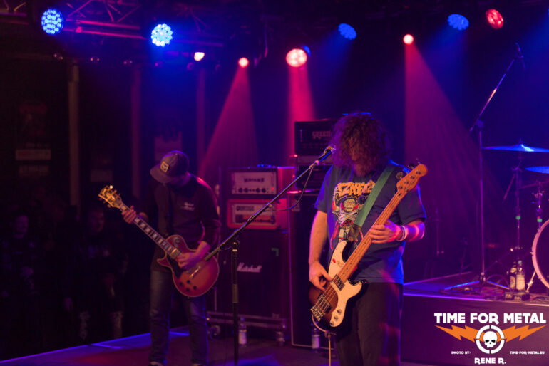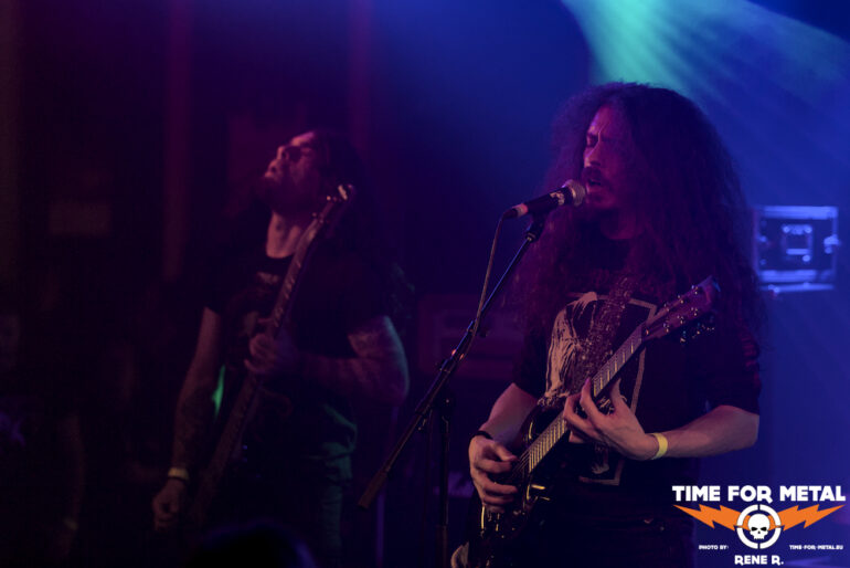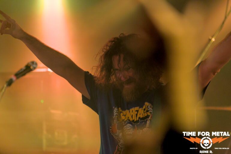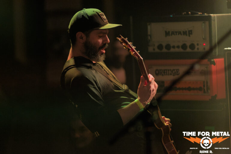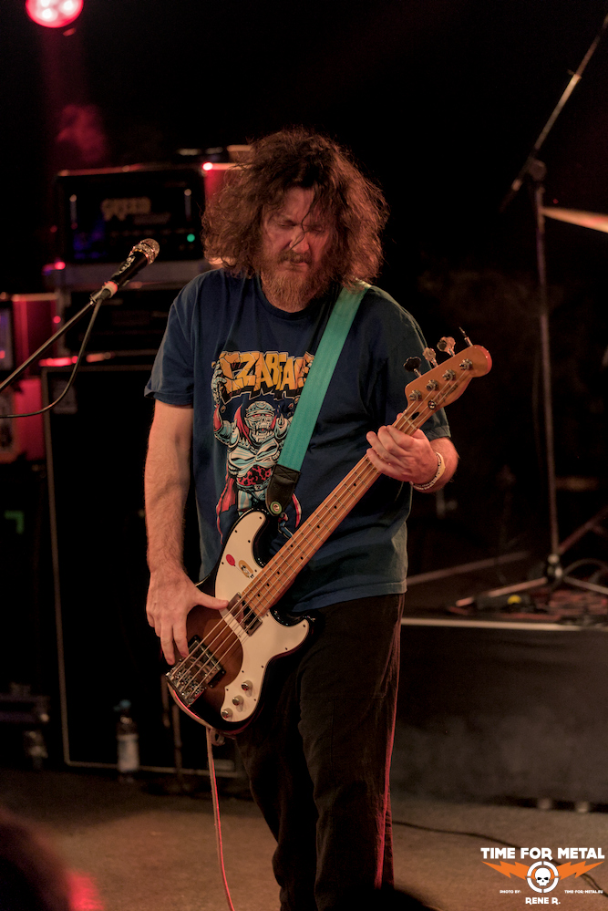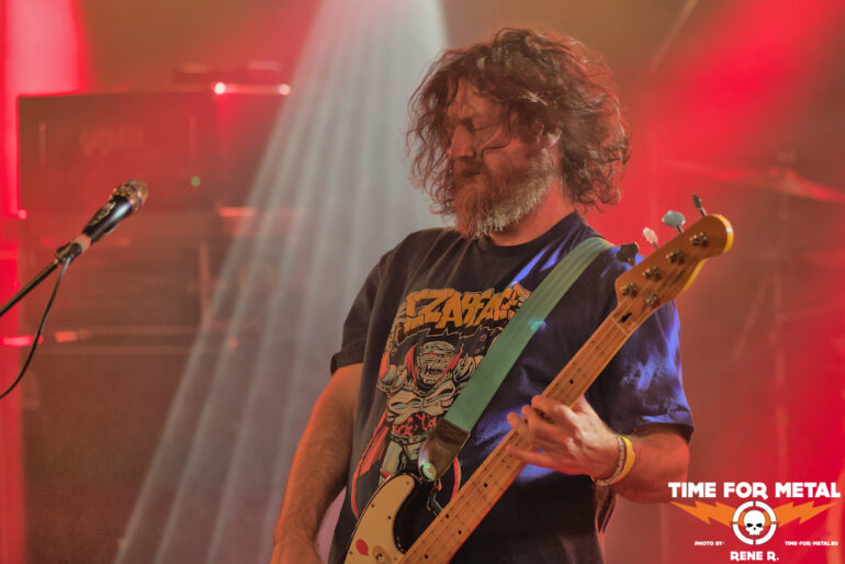 Und dann sind – sozusagen mit mehr als einem Jahr Verzug – endlich auch Acid Mammoth aus Athen am Start. Natürlich kommt die Sprache gleich zu Beginn auf den verpassten 2023er-Gig und den ursächlichen Schneesturm, umso mehr freut sich die Band ganz offensichtlich, endlich in München auf der Bühne stehen zu können.