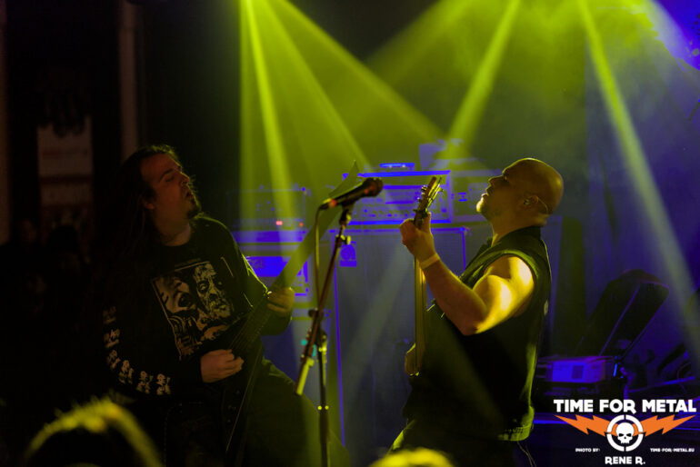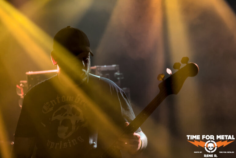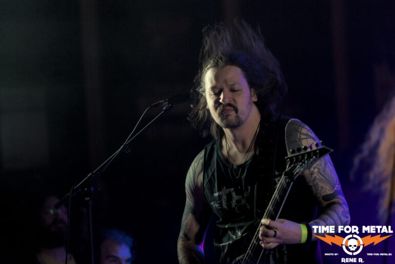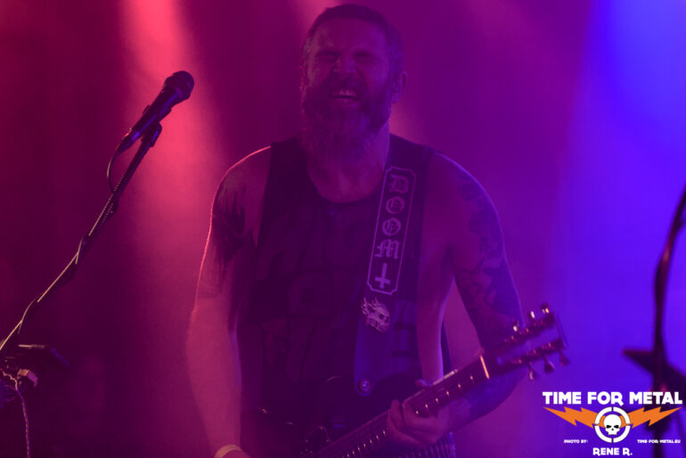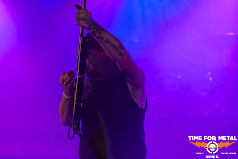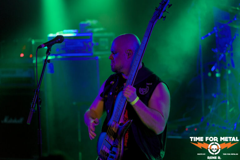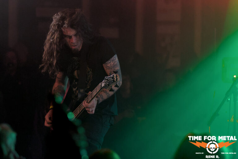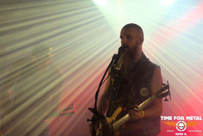 Auch Endonomos hatte ich bisher nicht auf dem Zettel, die Österreicher spielen eine meiner bevorzugten Doom-Varianten – die mit Death-Metal-Einschlag. Nicht nur klassisch-epischer Gesang bzw. Candlemass-Worshipping, sondern auch Growls und Gepolter. Sänger und Gitarrist Lukas beherrscht im Übrigen beide Styles, und das alles andere als schlecht – Respekt! Da verwundert es auch nicht, dass der letztjährige Longplayer Endonomos II – Enlightenment beachtliche 4.0 von 5.0 beim Angry Metal Guy einheimsen konnte. An Songs wie Hostile oder auch Atropos vom 2022er-Erstling kommt man als Doom-Jünger nicht vorbei, viel besser können das die Legenden wie etwa Mourning Beloveth auch nicht. Die Band verabschiedet sich mit den Worten “Es war uns eine Freude, euch die Laune zu vermiesen” – danke, es war auch dem Publikum eine Freude, wenn so ein vermiester Abend klingt, dann gern wieder.