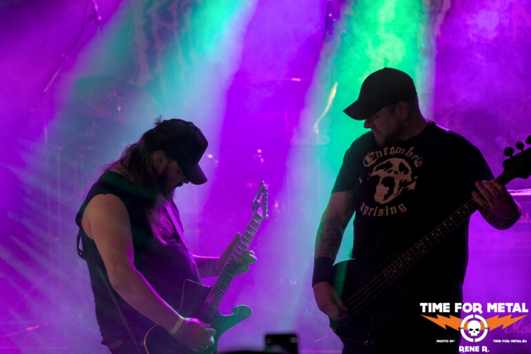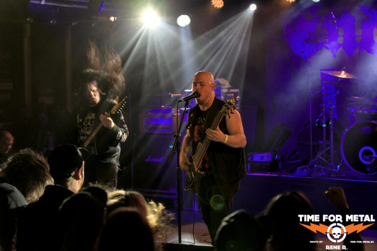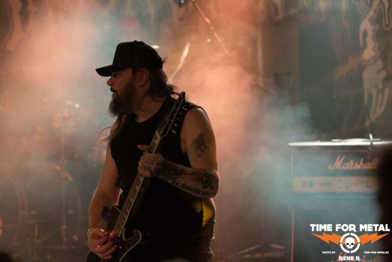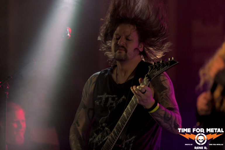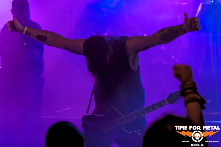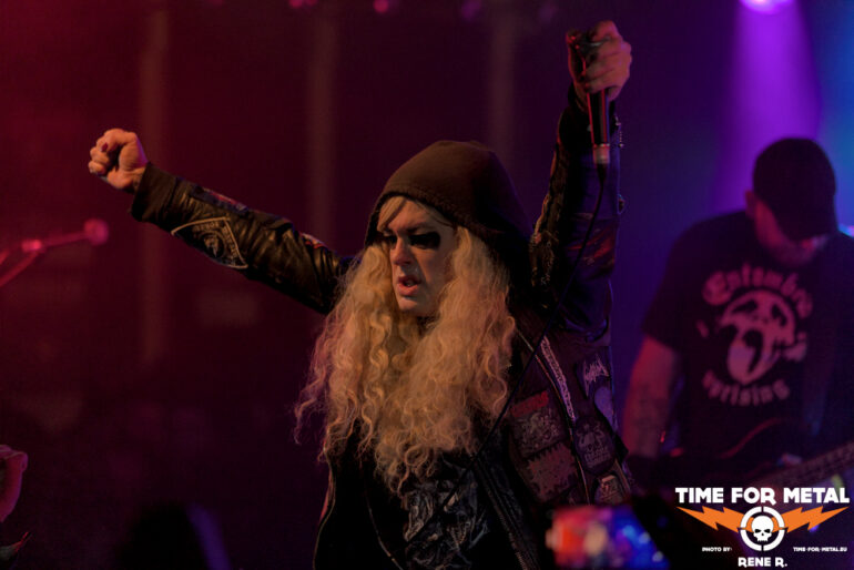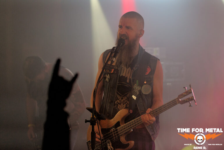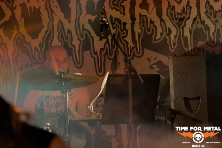 Auch Endonomos hatte ich bisher nicht auf dem Zettel, die Österreicher spielen eine meiner bevorzugten Doom-Varianten – die mit Death-Metal-Einschlag. Nicht nur klassisch-epischer Gesang bzw. Candlemass-Worshipping, sondern auch Growls und Gepolter. Sänger und Gitarrist Lukas beherrscht im Übrigen beide Styles, und das alles andere als schlecht – Respekt! Da verwundert es auch nicht, dass der letztjährige Longplayer Endonomos II – Enlightenment beachtliche 4.0 von 5.0 beim Angry Metal Guy einheimsen konnte. An Songs wie Hostile oder auch Atropos vom 2022er-Erstling kommt man als Doom-Jünger nicht vorbei, viel besser können das die Legenden wie etwa Mourning Beloveth auch nicht. Die Band verabschiedet sich mit den Worten “Es war uns eine Freude, euch die Laune zu vermiesen” – danke, es war auch dem Publikum eine Freude, wenn so ein vermiester Abend klingt, dann gern wieder.