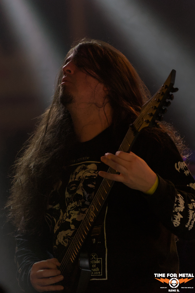 Der Abend neigt sich seinem Ende zu, und es obliegt Dopelord, die rote Laterne auf die Bühne zu tragen. Hier gibt’s noch mal Electric-Wizard-Worship, mit schaurigen Synthesizern, Sabbath-Riffs und zum Teil mehrstimmigem Gesang. Pawel und Piotr harmonieren ganz wunderbar an den Vocals, stimmungsvoll in Szene gesetzt von gestapelten Schädeln an den Mikrofonständern. Songs wie Hail Satan oder Reptile Sun transportieren den Kern eines Genres, in dem man Dopelord zweifellos zu den talentiertesten und authentischsten Vertretern zählen muss.