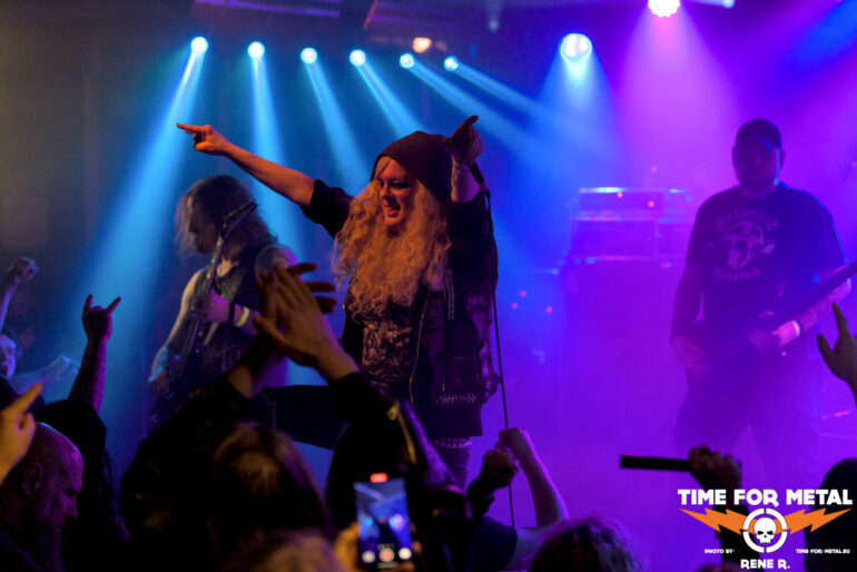 Wir hören Thronehammer, Kingslayer, Thy Blood und – zum ersten Mal auf einer Tour live – Shieldbreaker. Der Song A Fading King ist einem kürzlich verstorbenen Freund gewidmet. Großer Gestus liegt der Frau am Mikro, stimmlich spielt Kat Shevil Gillham eh in einer ganz eigenen Liga.