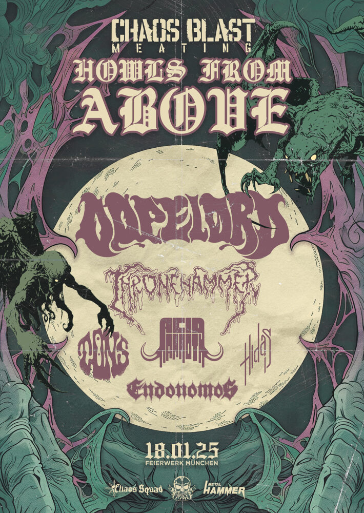 Etwas mehr als ein Jahr ist es her, seit das Chaos Squad das letzte Mal zum Chaos Blast Meating lud, damals hieß das Motto “Howls From Beyond”, an diesem frostigen Samstag lautet die Parole “Howls From Above”. Immerhin hat das Wetter dieses Mal ein Einsehen, und so bestehen gute Chancen, die Griechen von Acid Mammoth, die schon für die 2023er-Ausgabe angekündigt waren, dieses Mal tatsächlich erleben zu können. Insofern löst der heutige Abend ein altes Versprechen ein, auch wenn The Night Eternal wiederum unentschuldigt fehlen. Nun gut – man kann nicht alles haben, das Line-Up – so werde ich später resümieren – ist trotzdem mehr als stark, auch wenn mir die meisten Bands zu diesem Zeitpunkt noch völlig unbekannt sind, mit Ausnahme von Thronehammer, die ich vor nicht allzu langer Zeit bereits im Backstage München erleben durfte.