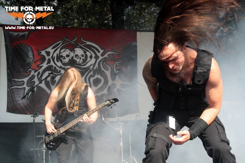 Als Macbeth, die Kultband aus dem Osten, bestätigt wurde, konnte ich es kaum glauben. Bislang die Männer nur auf ihrer DVD erlebt, überzeugen die Alben und auch das Interview mit der Gruppe vor ein paar Jahren. Prägnant wie heiße Funken schmelzen die Heavy Metal-Kompositionen durch die Haut direkt auf den Knochen. Wer die Geschichte von Macbeth kennt, kann nur Gänsehaut bei Songs wie Hunde Wollt Ihr Ewig Leben oder Stalingrad bekommen. Ohne Headbangen kommt man gar nicht durch die Session, zudem ist es unglaublich cool mit anzusehen, welchen Spaß die Erfurter an ihren Hymnen haben. Gesanglich glänzend und technisch bärenstark – mehr kann man aus der tödlichen Mixtur aus Thrash und Heavy Metal nicht erwarten! Selbst nach dem schweißtreibenden Auftritt hat Sänger Oliver Hippauf noch Zeit für ein kleines Gespräch.